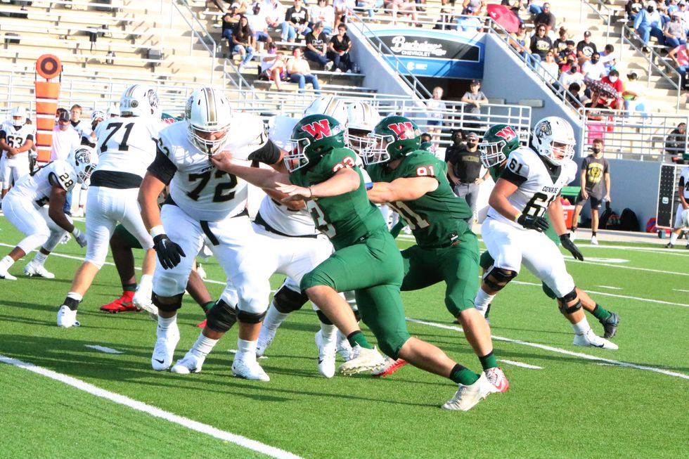 In the first quarter, the Highlanders put the first points on the scoreboard with a 29 yard field goal kicked by Trey Harrison, putting the Woodlands up 3-0. Conroe then scores the first touchdown with the extra point for the final score of the first quarter 3-7.