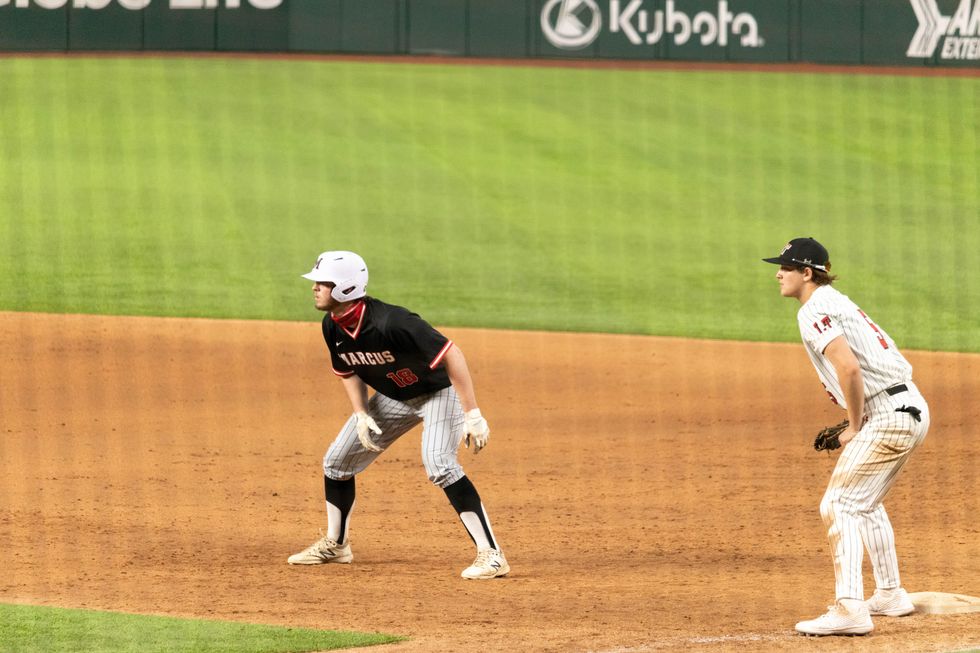 Saturday afternoon, Flower Mound Marcus baseball faced off against Lake Travis in the Texas High School Baseball Classic at Globe Life Field in Arlington, Texas. With a two-hour time limit for each game for the event, the Marauders finished the game in a 3-3 tie with the Cavaliers.