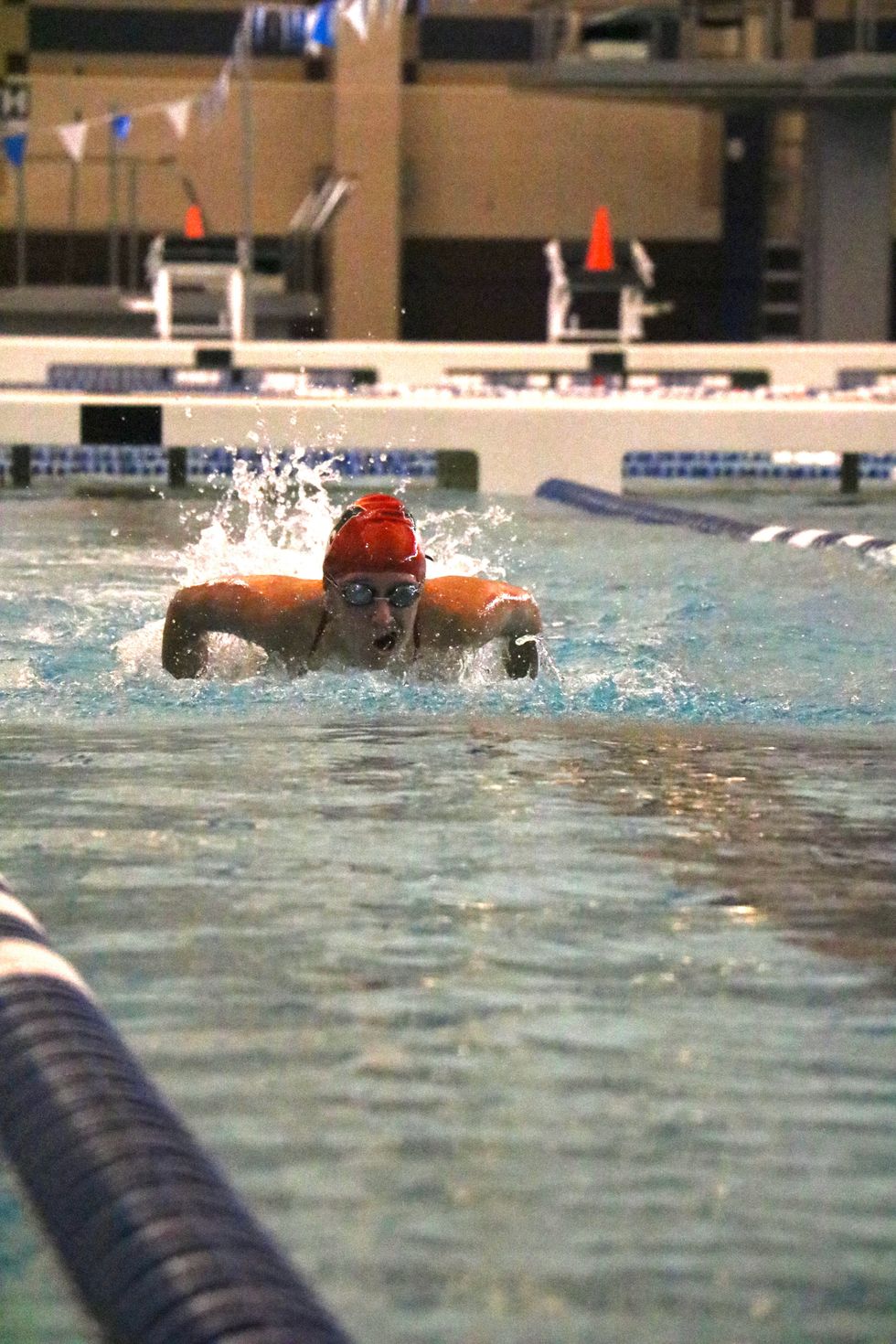 Arjun Radhakeiahnan swims breaststroke during the boys relay.