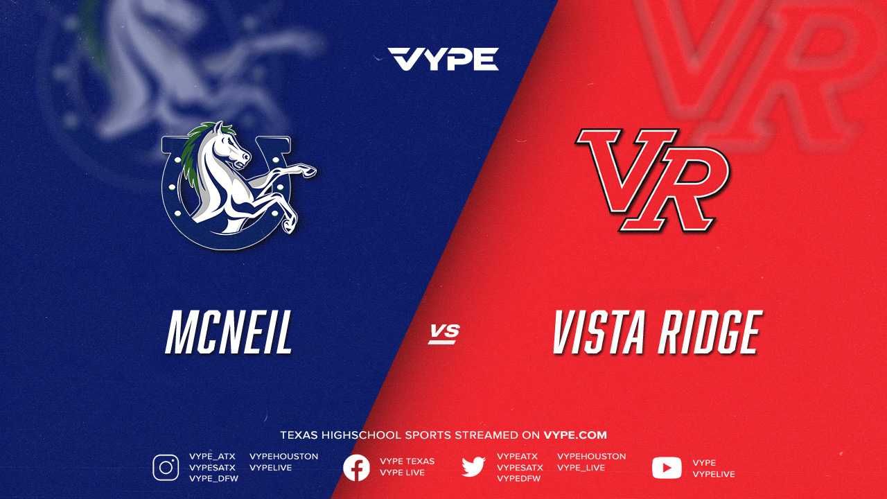 7PM - Football: McNeil vs. Vista Ridge VYPE LiveOct 07, 2025CLICK THE MCNEIL OR VISTA RIDGE GRAPHIC BELOW TO WATCH THE LIVE BROADCAST FOR THAT TEAM -