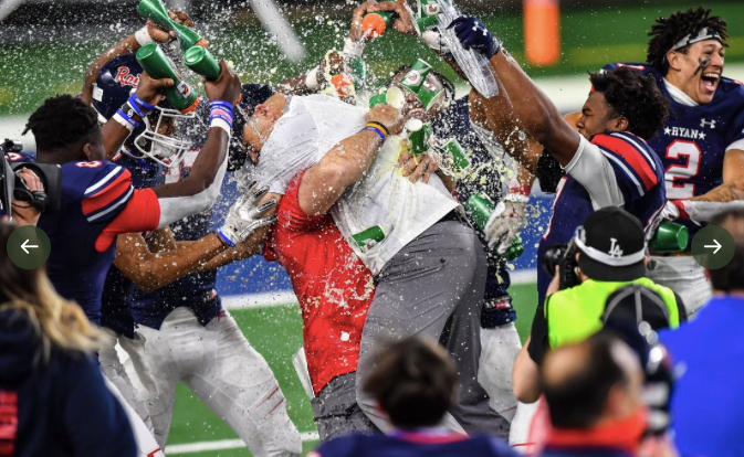 There are certain perks that come with being the head coach of any sport. Denton Ryan head football coach Dave Henigan got to experience that this week when Jostens representative Justin Ray showed up at his house with Henigan's new bling and a sneak peek at Denton Ryan football's UIL Texas State Championship ring. Henigan shared a video of the ice on Twitter Monday evening: