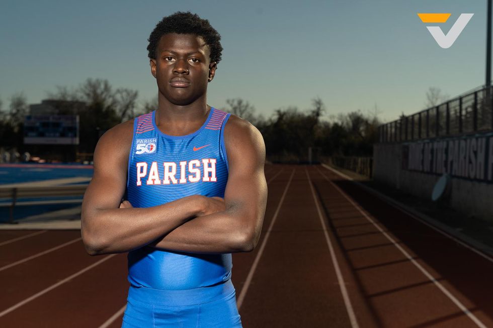 Parish track and field coach, Jeremy Wariner, poses during the Parish Spring Sports Media Day with VYPE DFW (2022).