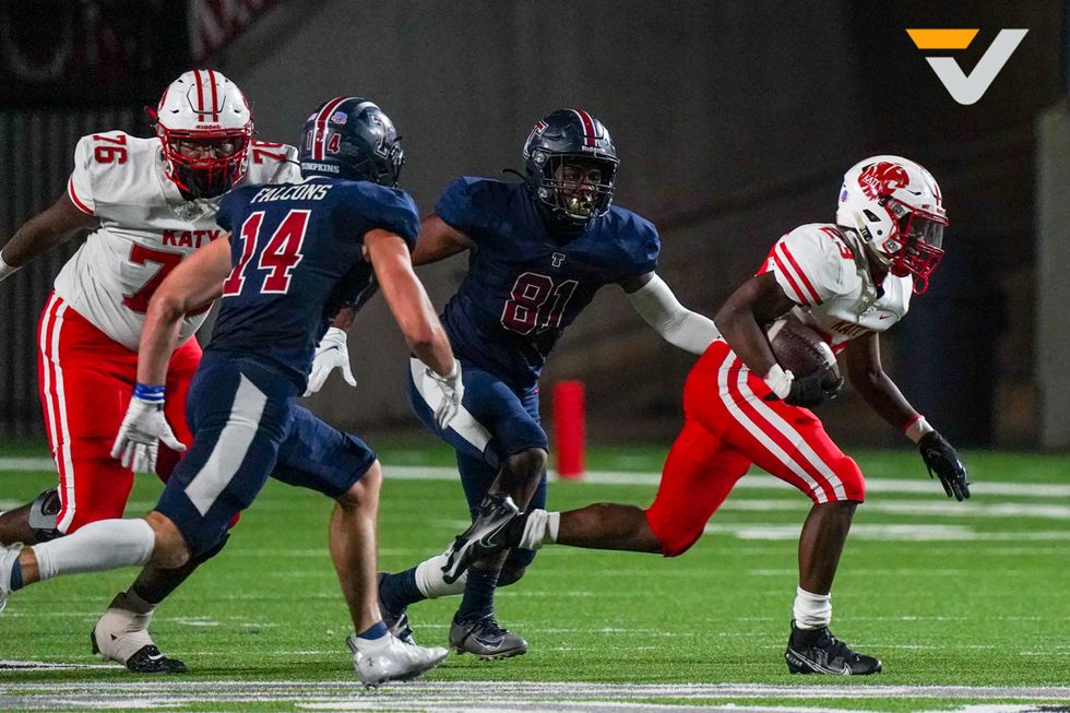 What a night for Joshua McMillan. He ended up being Jalen Milroe's No. 1 target as he reeled in eight catches for 146 yards and three scores. McMillan isn't the biggest receiver, reminding me a little of Wes Welker-style of play, but he can go. In a Katy secondary that includes Bobby Taylor and Hunter Washington, both high Division I safeties, McMillan continuously made big play after big play. He is a coverage problem and him and Milroe have it clicking.