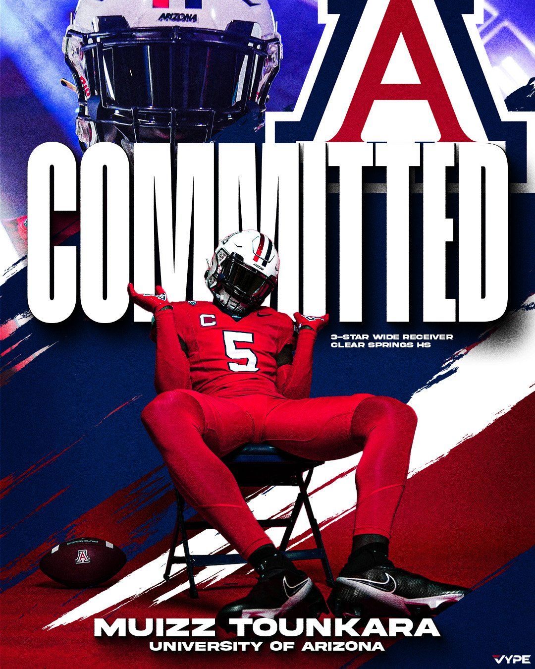 2025 Clear Springs 3-Star wide receiver Muizz Tounkara committed to Arizona today picking the Wildcats over Wisconsin and Kansas.