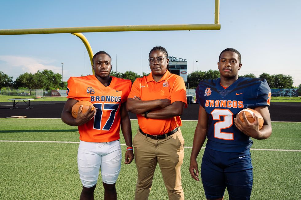 ONE OF THE FEW FEMALE HIGH SCHOOL FOOTBALL COACHES IN TEXAS ONCE PLAYED THE GAME PROFESSIONALLY.