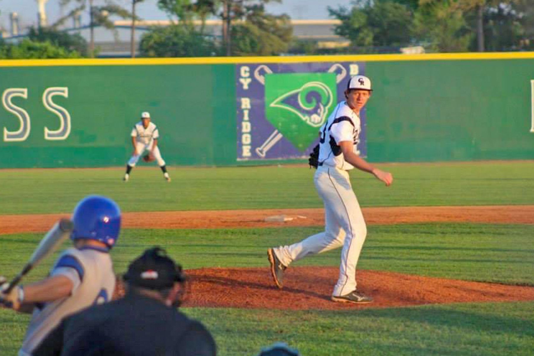 Cypress Ridge High School alumnus Kyle Gruller follows his pitch in a game against Cypress Creek High School. Gruller signed as an undrafted free agent with the Houston Astros after completing his collegiate career at Houston Baptist University and Wharton County Junior College.