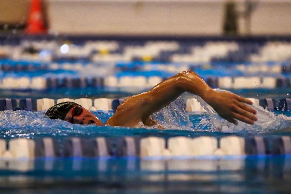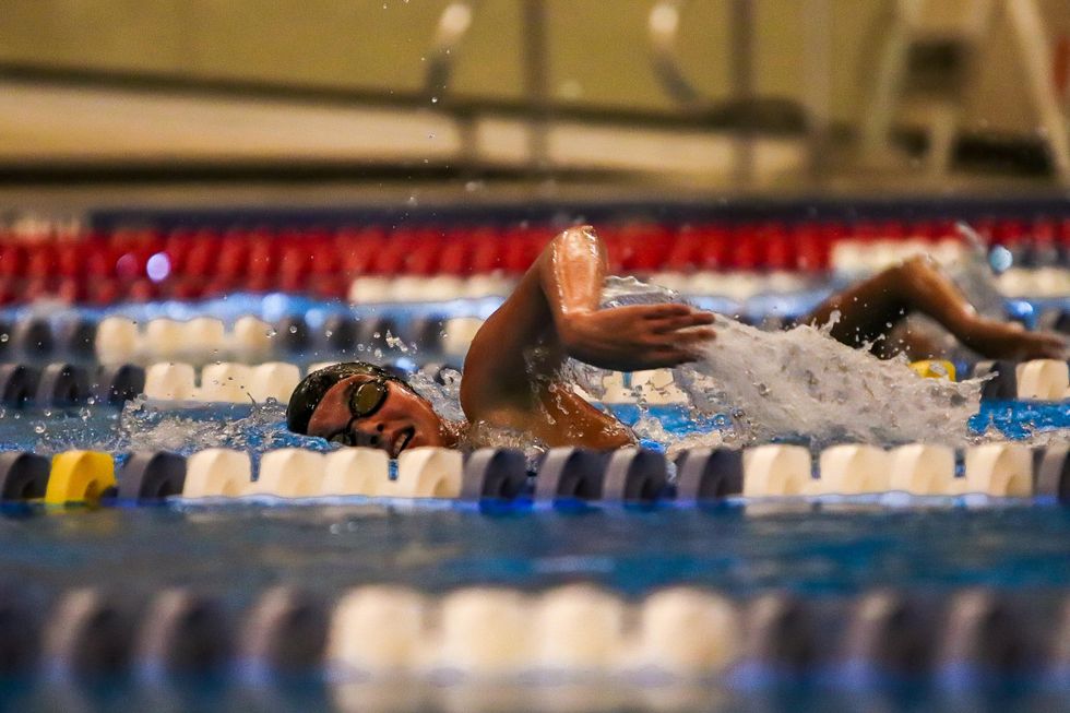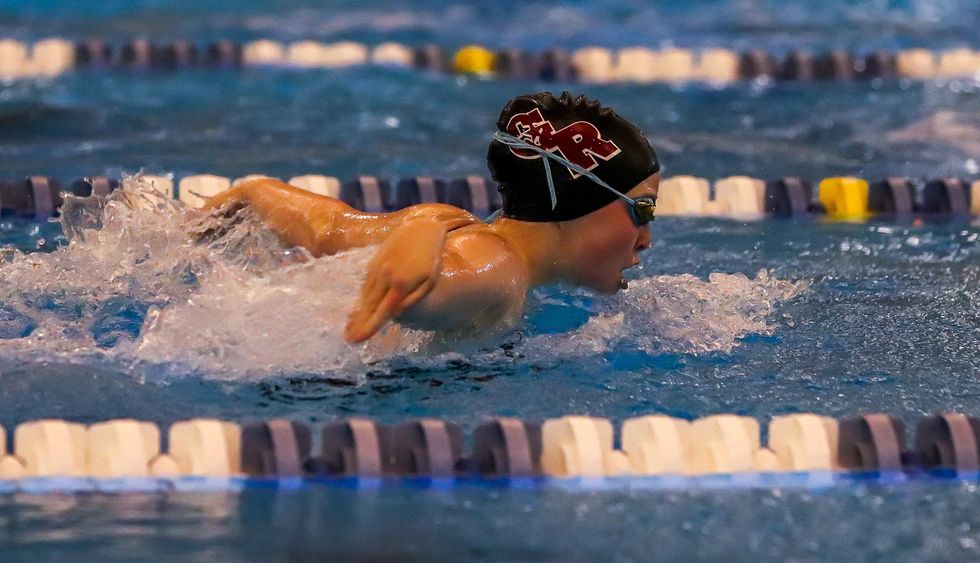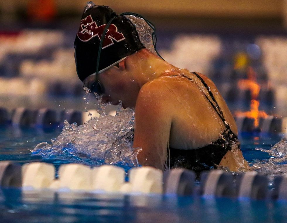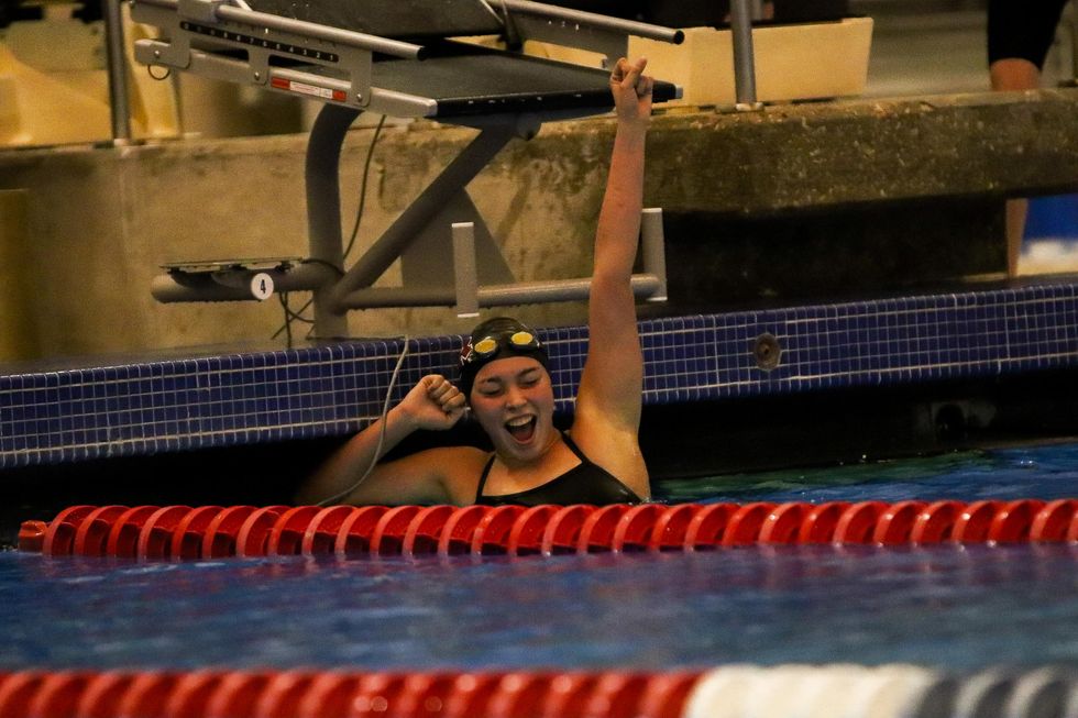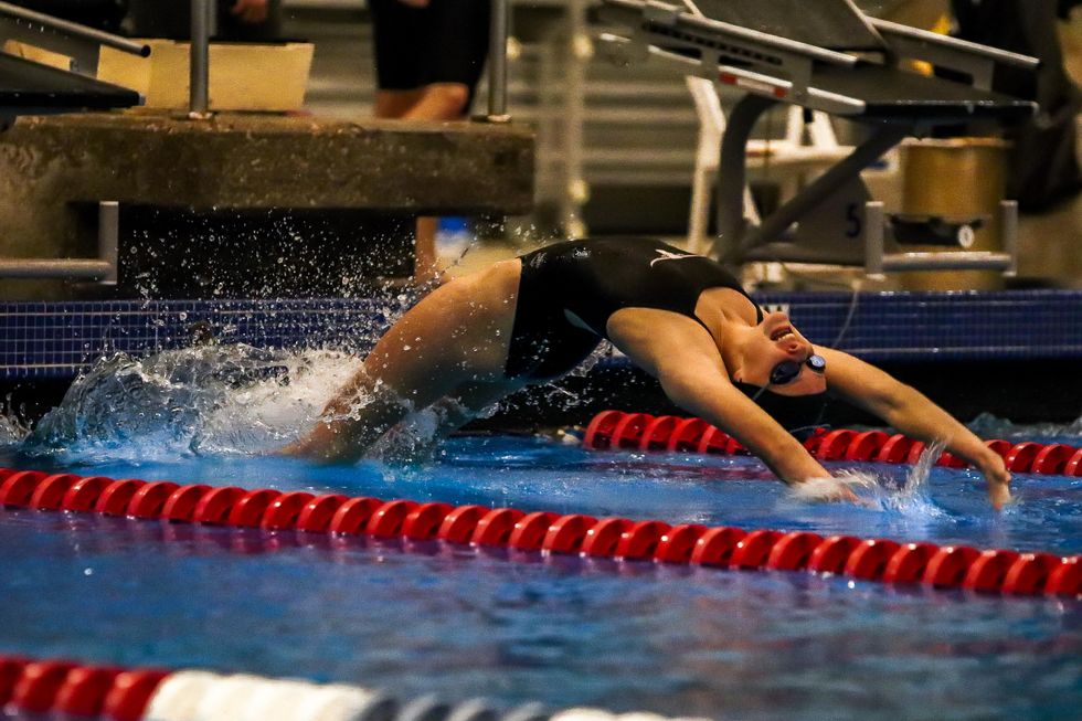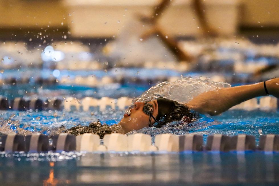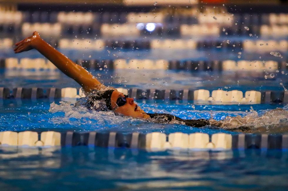 Annie Schoditsch (10) competed in the girls 100m back-stroke race and placed first with a final time of 1:06.13.