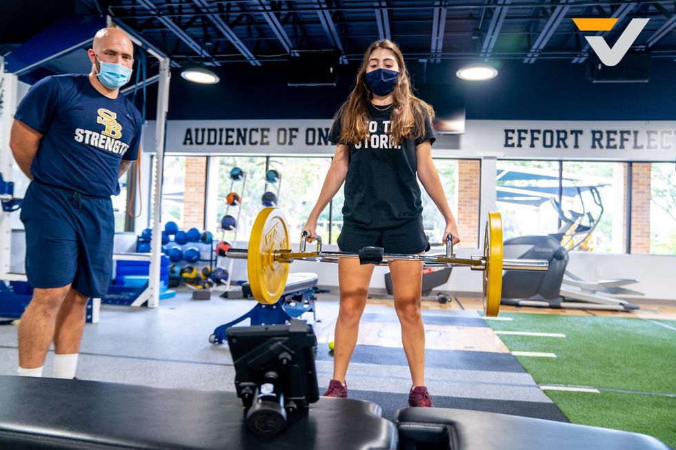 Director of Athletic Performance Nicholas Mascioli and a pair of Second Baptist School athletes took time to demonstrate the new PUSH technology they are utilizing.