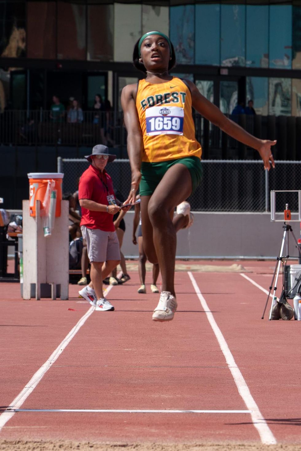 The previous record was held by Cinco Ranch's Scott Sellers. In the 6A boys triple jump, Fort Bend Travis' went all out on his final Damilare Olukosi jump of the day to hit 51-feet-8.75-inches, breaking the previous 6A record from 2001. In that year, Nimitz's Stephen Brown hit 51-feet-6.25-inches.