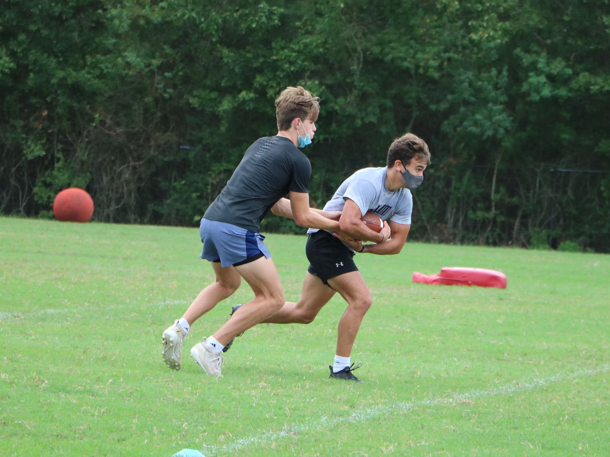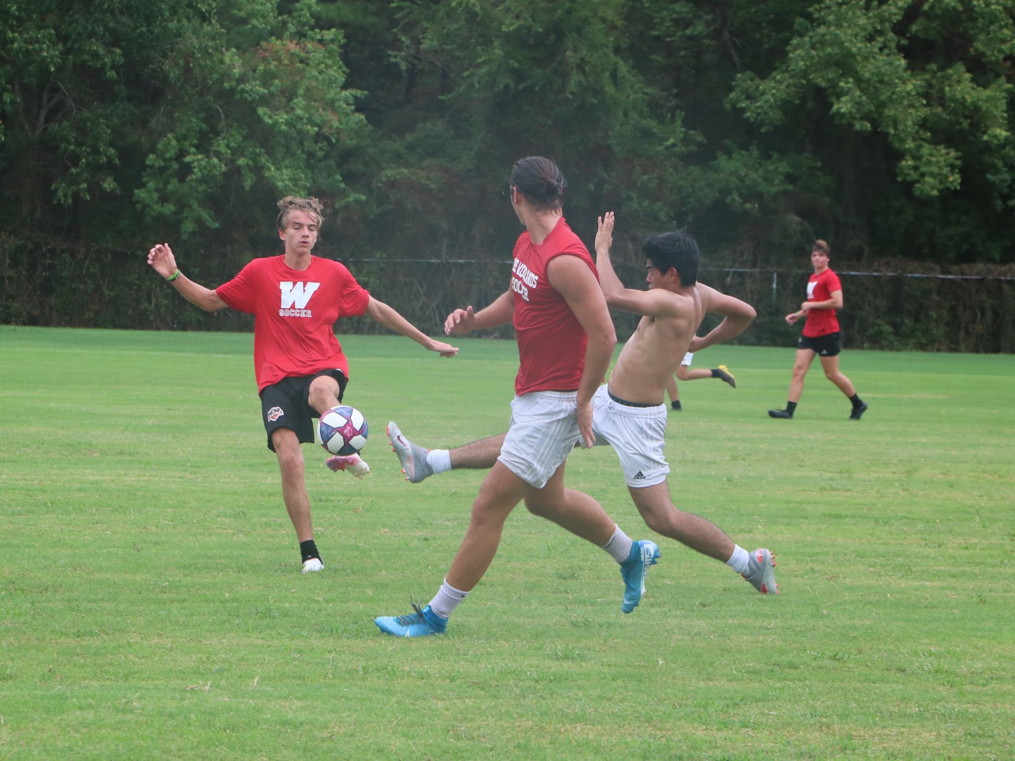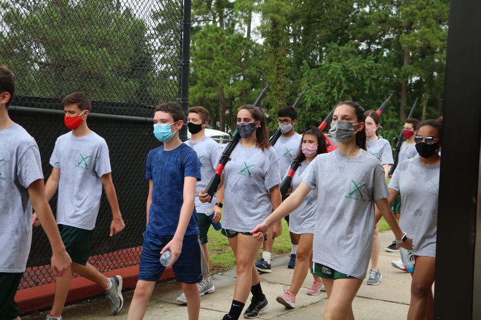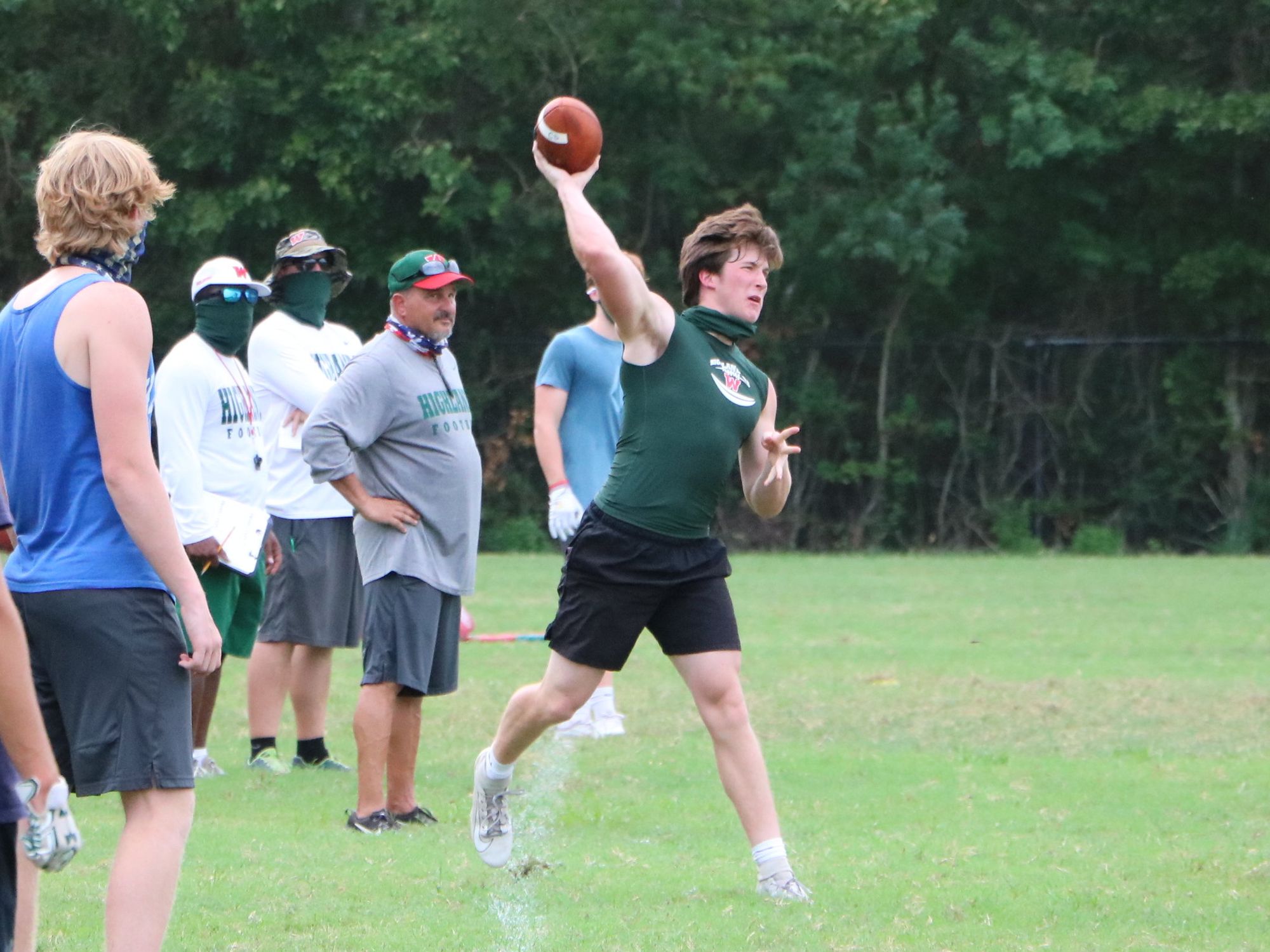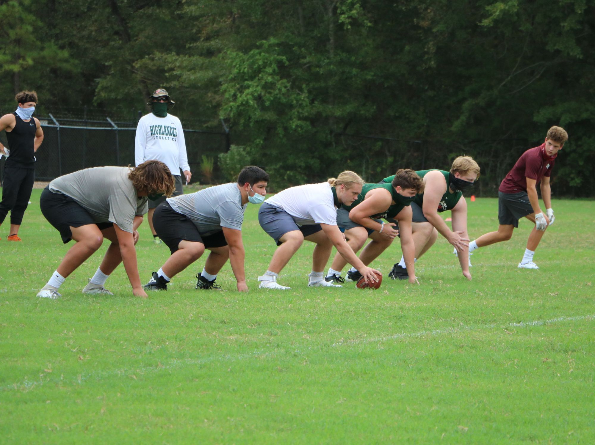 On Wednesday, August 2, around 4 o'clock at The Woodlands High School, over seven different groups meet to prepare for the school year despite the national pandemic. You can find both students and administrators wearing masks despite their physical activity. Football starts their season on the September 24 with their first game against Pearland. Volleyball is having their first scrimmage against Cinco Ranch on September 11. Soccer is hopeful of beginning their season off normal in December with their first match against Northbrook. Band is still awaiting details about their season.