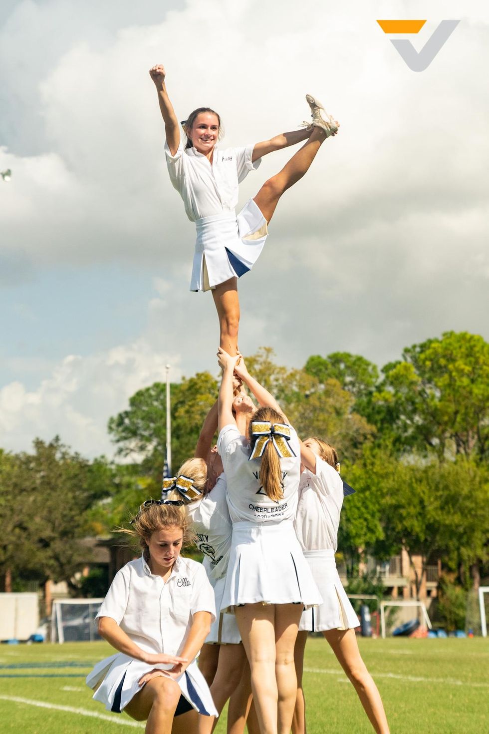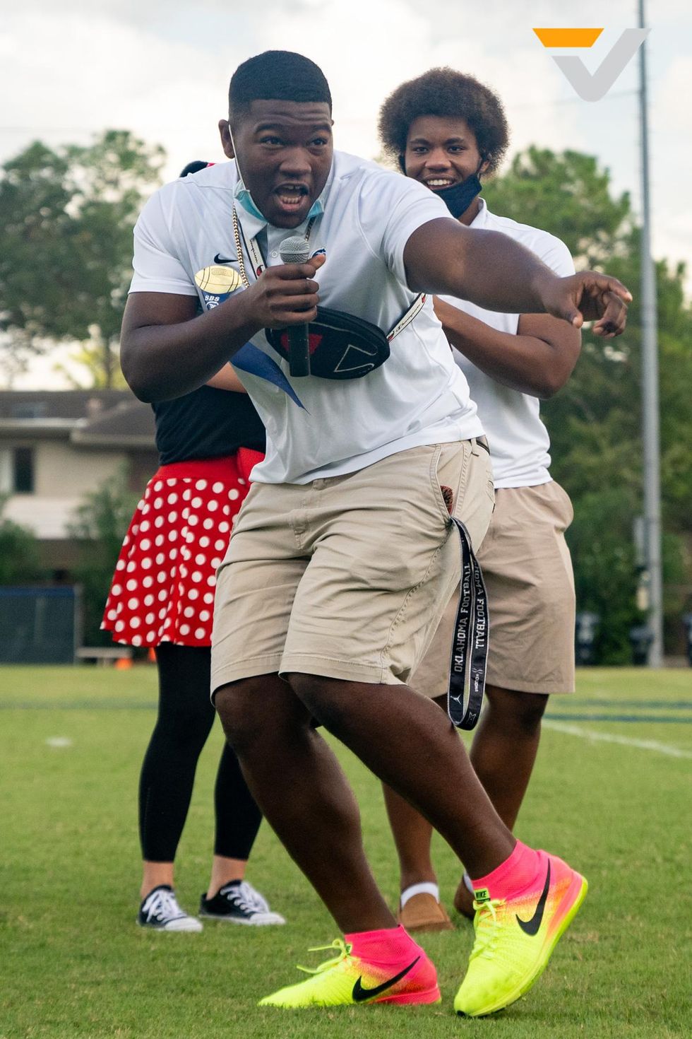 Soon it was time for the pep rally, which was held on the outdoor football field instead of the gym, allowing for more room and adherence to social distancing needs. The upper school students filed into their respective sections, ready for the festivities to begin.