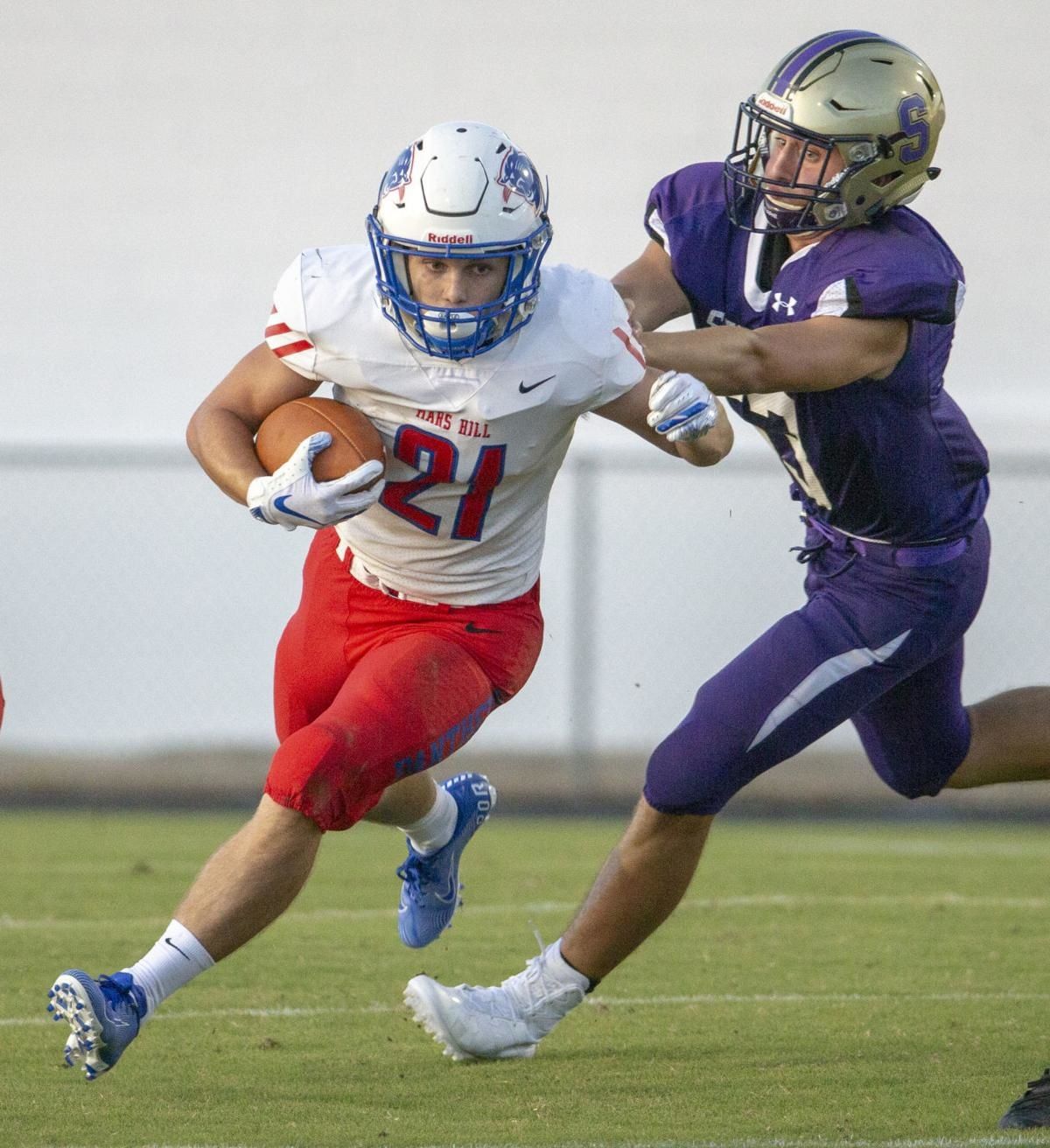 Mars Hill's Peyton Higgins shakes off a Sheffield tackle earlier this season. Higgins was named the AHSAA spotlight player of the week for special teams after returning a kick 94 yards for a touchdown and returning a punt 91 yards for a score in the Panthers' win last week over Phillips
