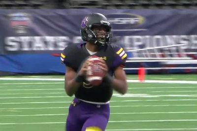 "It was pressure, but learning from Coach (Brice) Brown all he speaks is staying humble. When you stay humble, the team is right here (hand up high), you have to stay right here as a quarterback (hand in the middle of the body). So that's what I did the whole year. Stay here, stay humble, and I just did my job," said Karr QB Leonard Kelly.