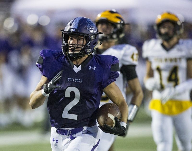 Connor Flannigan, Fayetteville wide receiver, runs for a touchdown in the second quarter vs St. Louis Vianney Friday, Aug. 30, 2019, at Fayetteville's Harmon Stadium.