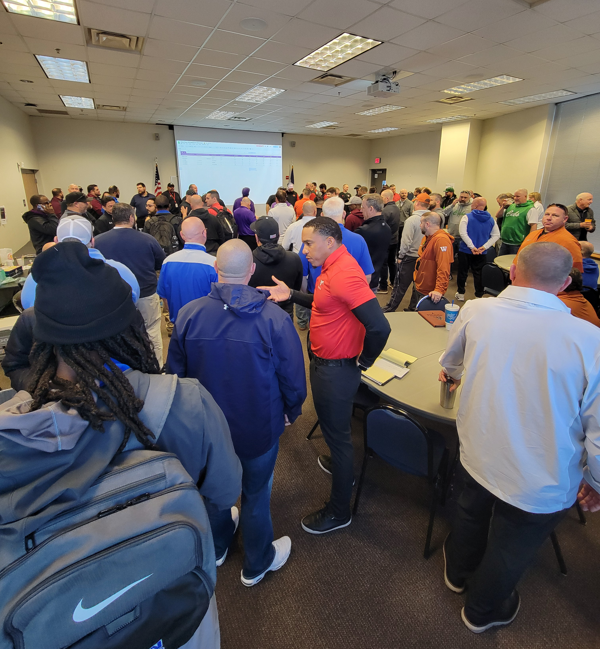In scenes reminiscent of a trading floor on Wall Street, coaches immediately begin seeking each other out across the packed room to secure those non-district games, usually in person but sometimes by phone or text. There’s nothing hi-tech about it. It’s nearly all personal relationships and handshake deals: Coach A needs a game on Week 3; he knows Coach B does as well. They shake on it and it’s set.