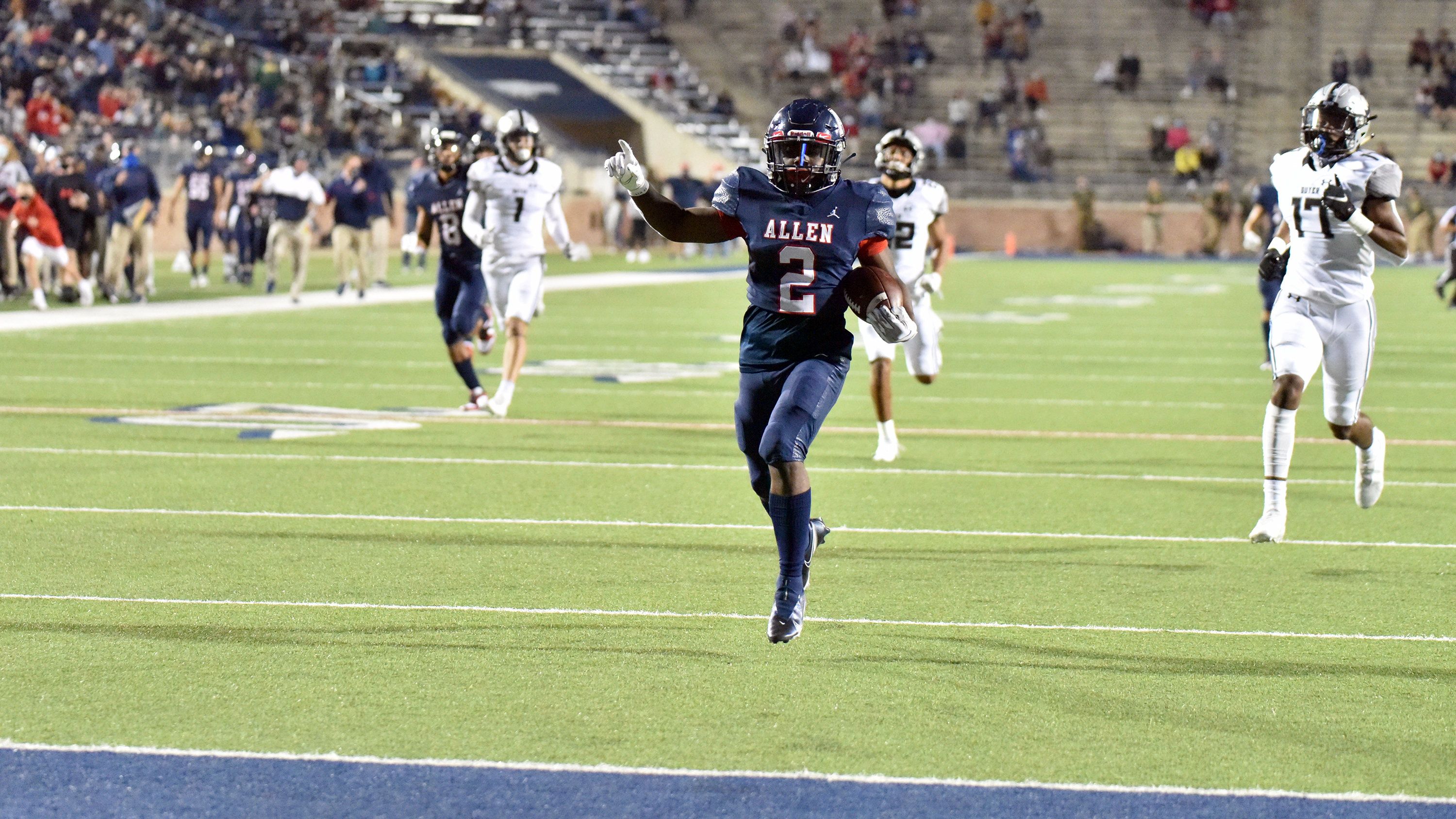 53-0. That's what Allen is at home since opening Eagle Stadium. In a de facto 5-6A district title game, Allen rolled right over Denton Guyer to stay perfect and continue its regular season winning streak. Allen has had an abbreviated schedule because of COVID and hadn't looked like the Allen of old this year. Well it did Friday night against a state-ranked team, which should serve notice of what to expect come playoff time.