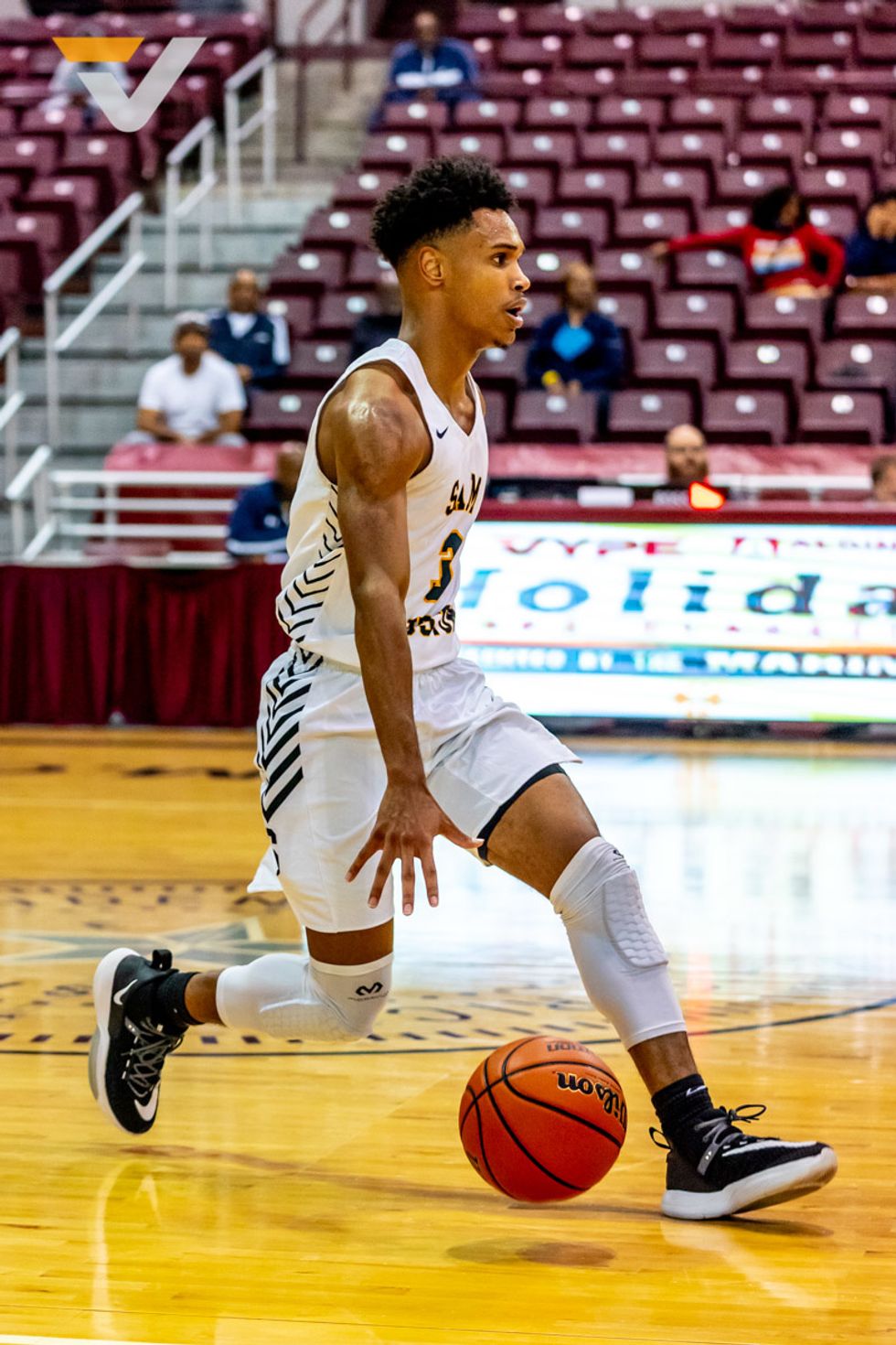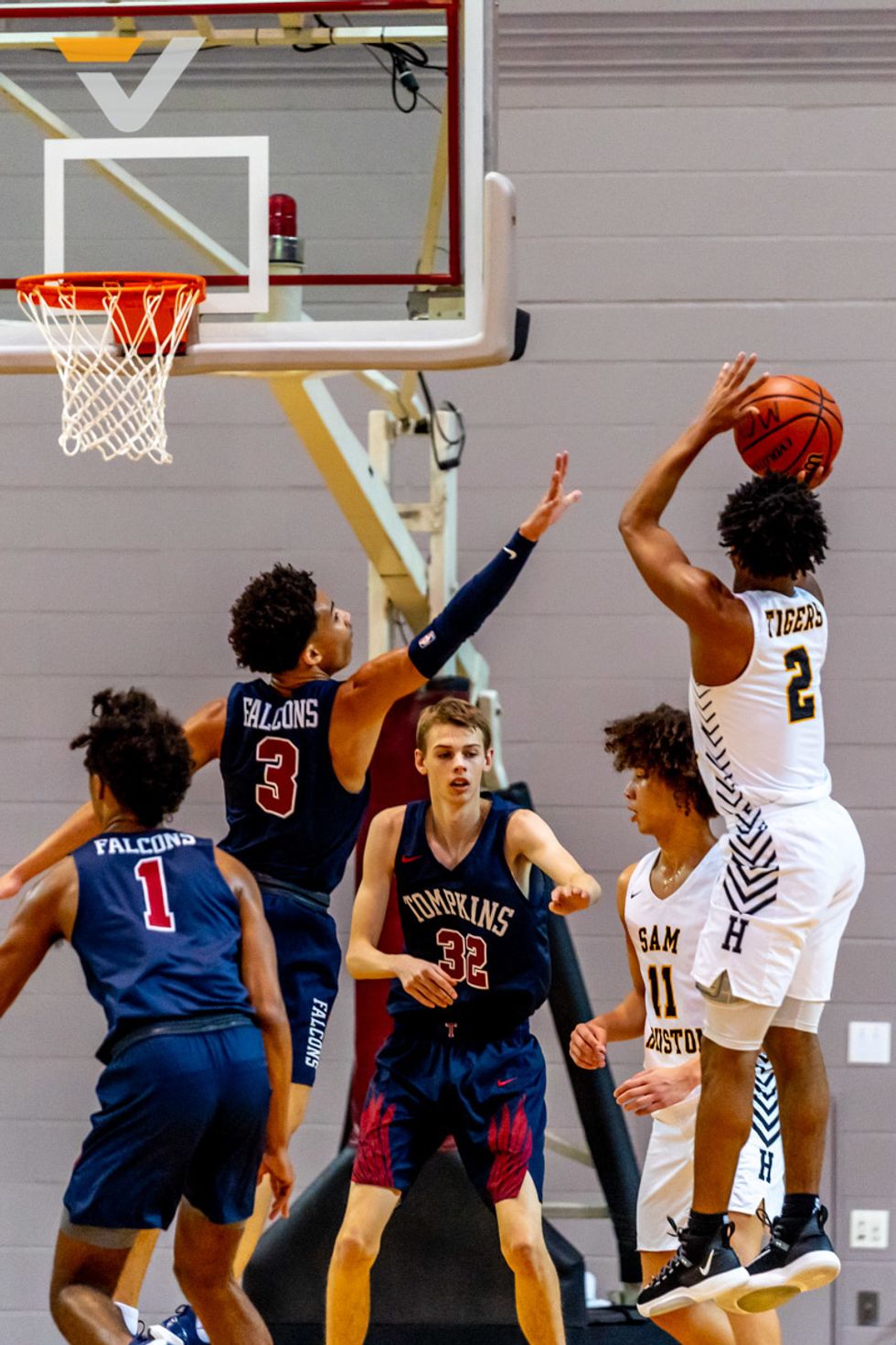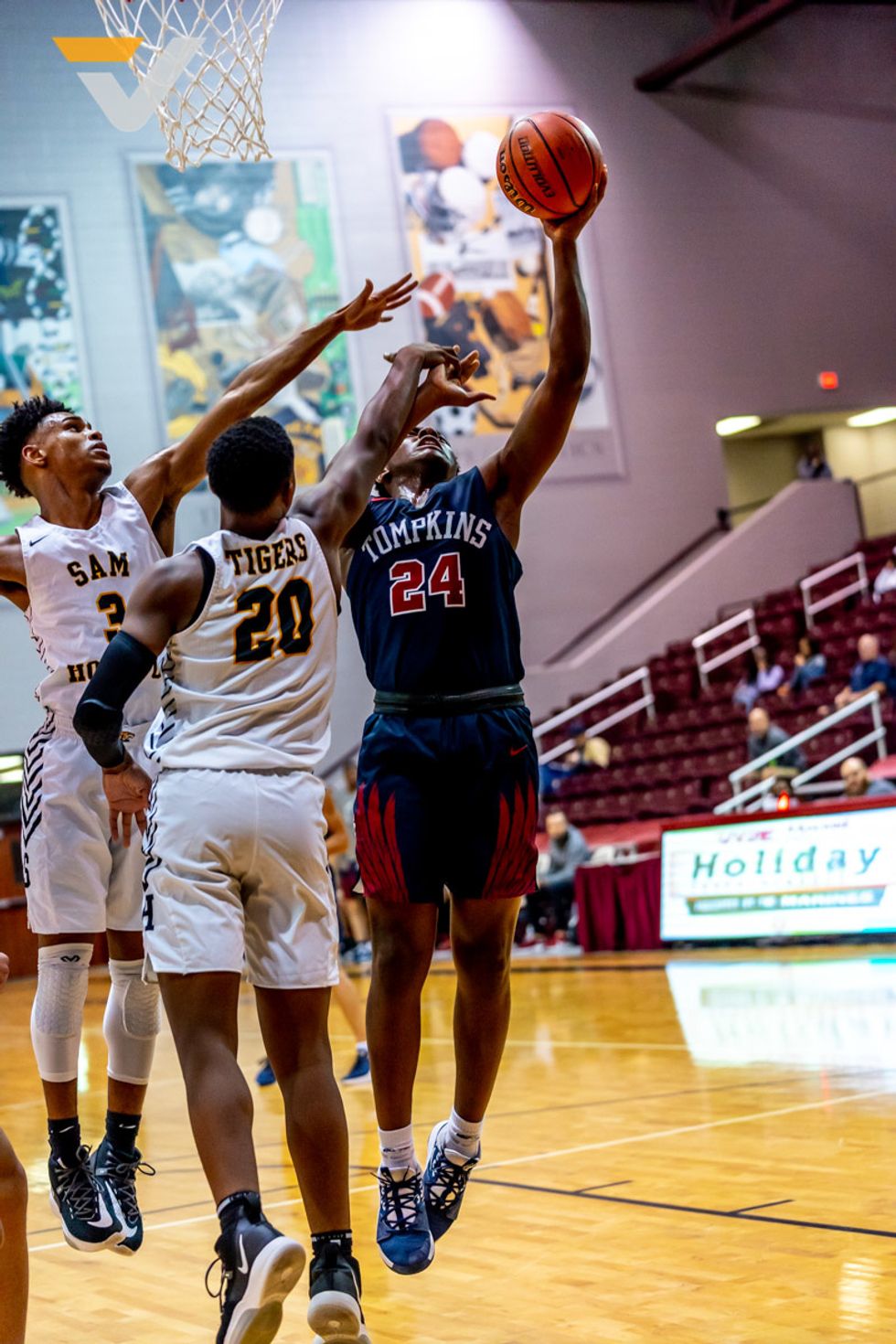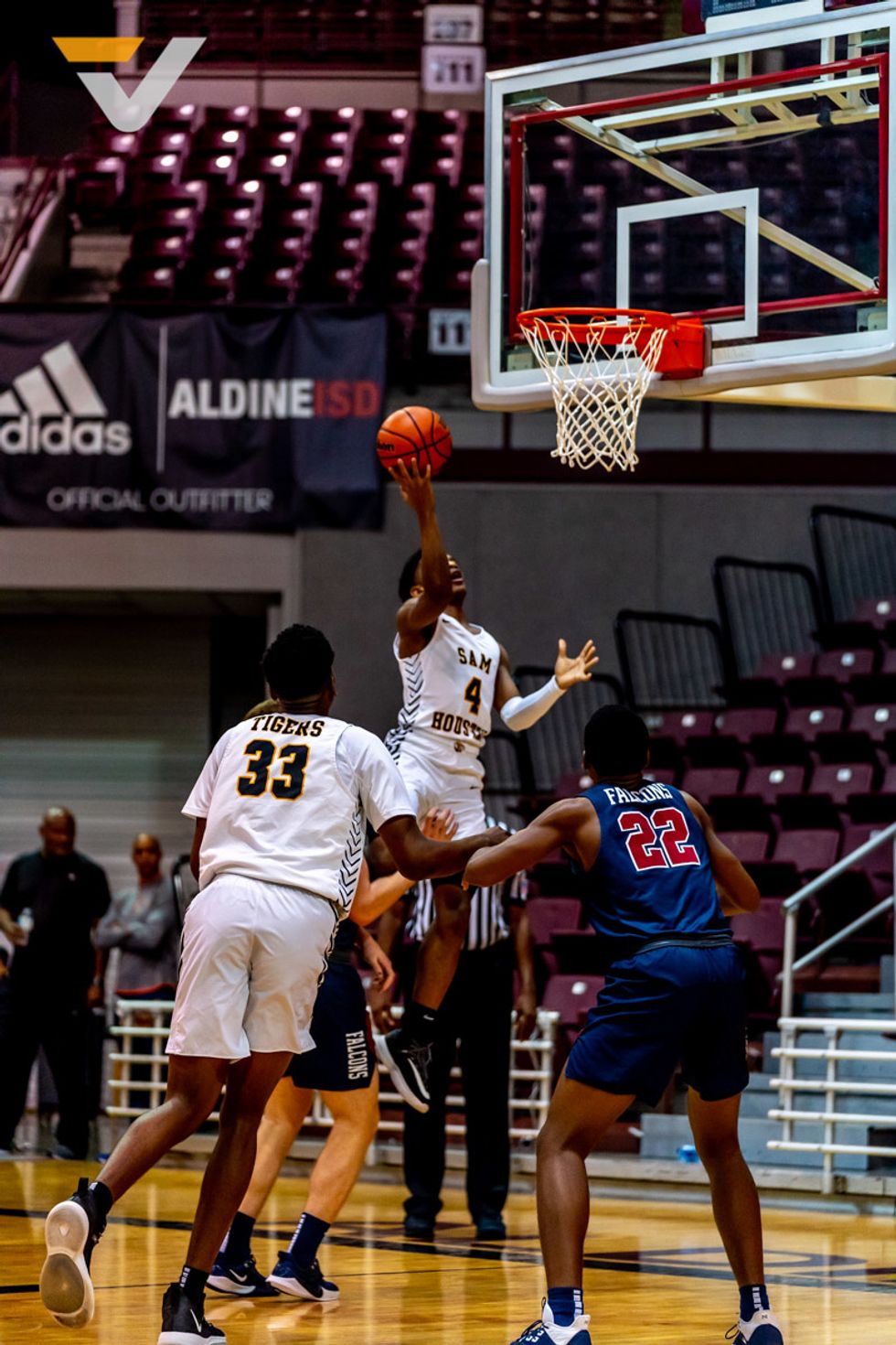 Sam Houston had a small team and a short bench. But in strolled the band, the cheerleaders, the dance team, the mascot, little kids in Sam Houston gear – the community to cheer on their Tigers.