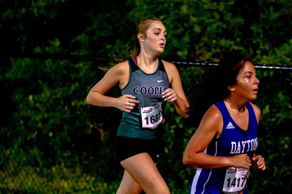 The girls' team ran in two divisions. We ran our Top 5 girls in the Varsity A (Elite) Division while the remainder ran in the Varsity B race. Freshmen Keira Van der Linden and Megan Day led the Varsity B races with 2-mile times of 14:31 and 14:34. They were followed by sophomore Bailey Leavitt with a time of 14:43. The Varsity A race was led by junior Katie Drake who ran a time of 13:32. She was followed by freshman Chloe Smith at 13:44 and Abby Mendenhall at 13:47. Rebecca Melin and Madison Breuax also ran well finishing out the scoring for Cooper.