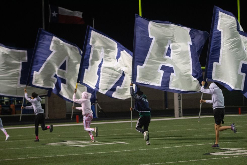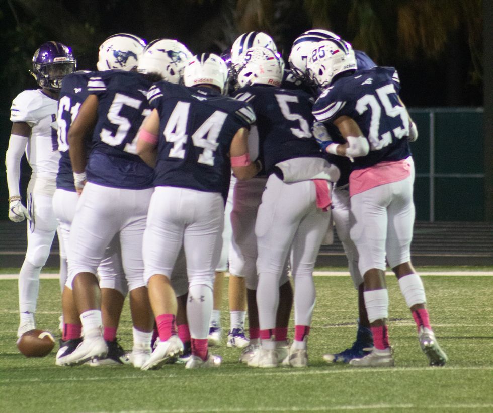Lamar Mustangs prepare to take the field.