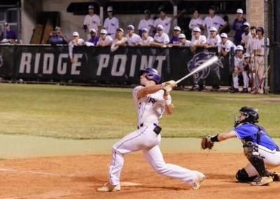 Ridge Point junior Carter Groen delivers a walk-off sacrifice RBI in Game 1 of the Panthers' bi-district playoff series against Westside earlier this month in Missouri City.