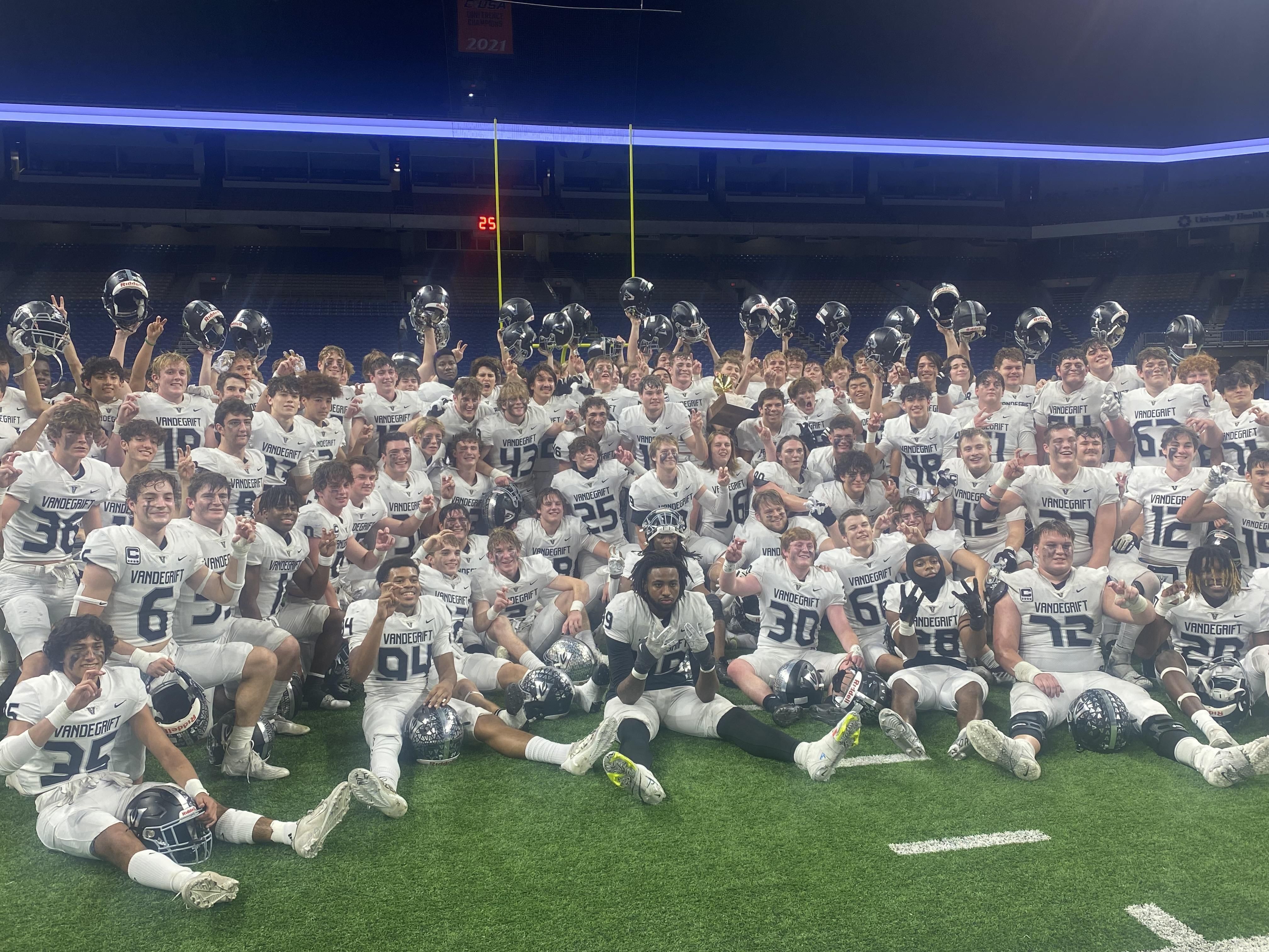 "It's amazing, I've been at Vandegrift since it opened," Vandegrift head coach Drew Sanders said. "I think about all the guys that I have coached since I started a JV season and to think not just a state championship but 6A, the highest classification, it's almost overwhelming for me."
