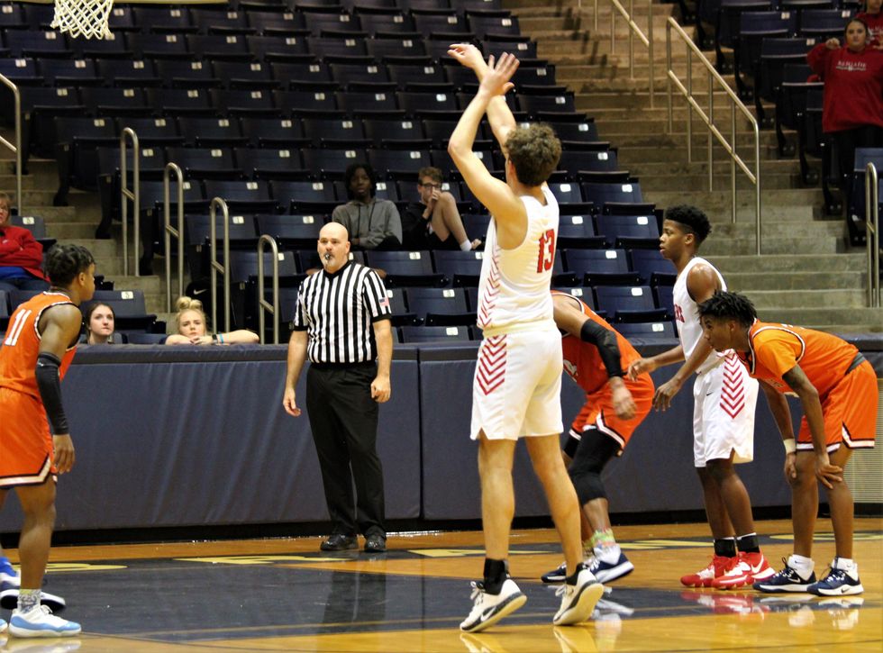 No. 24 Brandon Love takes the advantage of a fast play to show off with a dunk to advance the score for Bush.
