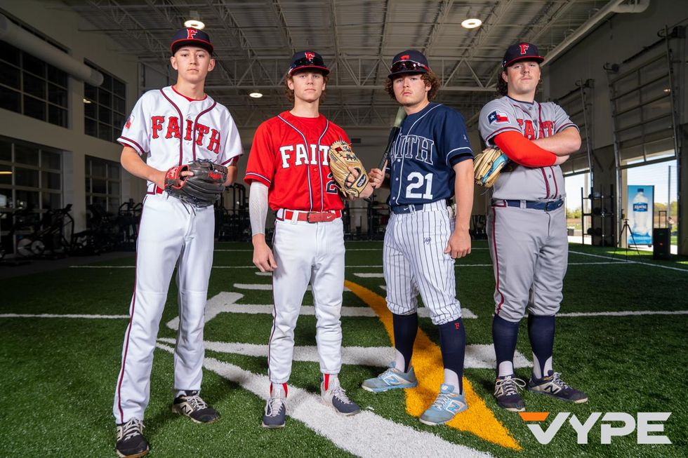 Members of the Grapevine Faith baseball team pose at the VYPE DFW baseball/softball photoshoot presented by Whataburger