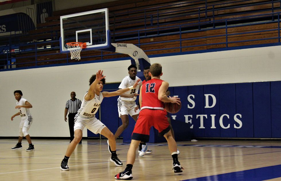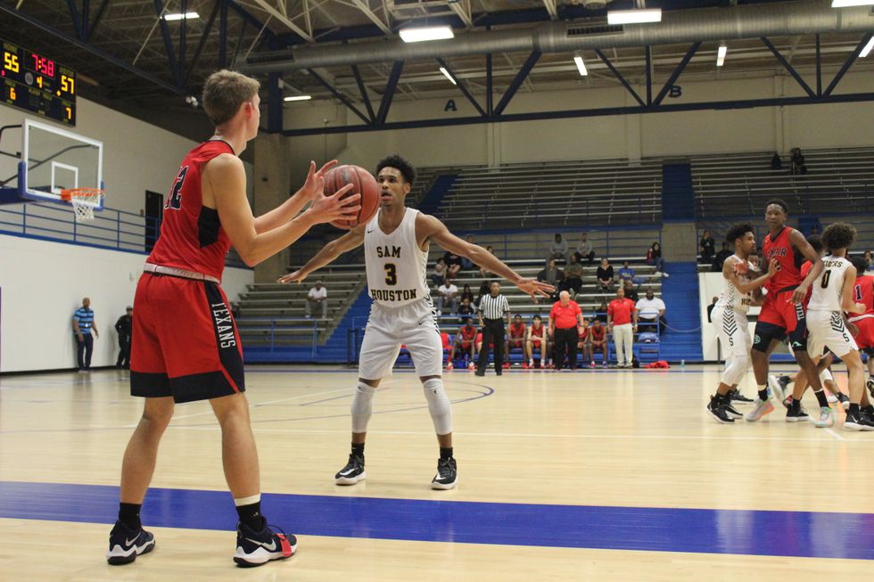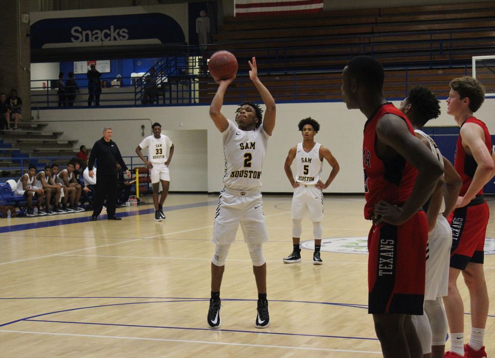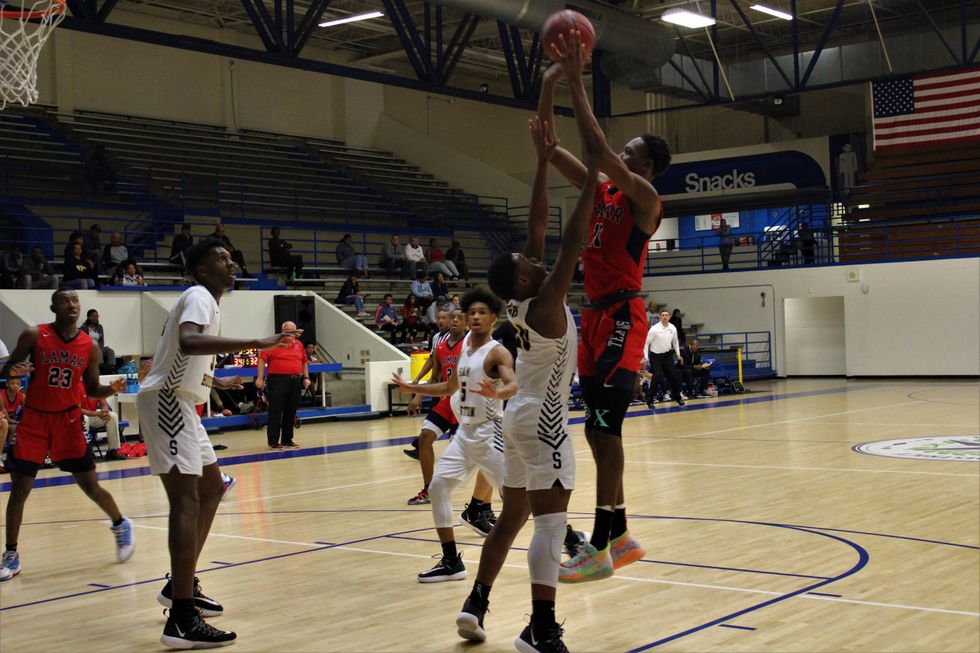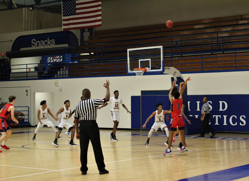 The Lamar Texans came together as a team to defeat the Sam Houston Tigers 59-55. At the end of the 1st quarter the score was 17-15 (Tigers). Throughout the 2nd (30-28), 3rd (45-44), and 4th (59-55) quarter the Texans stayed ahead of the Tigers to win a close and exciting game. Leading the way for the Texans was C. Smith (#3) w/ 12 points, Sir Issac (#11) w/ 10 points, and M. Brown (#23) w/ 10 points.
