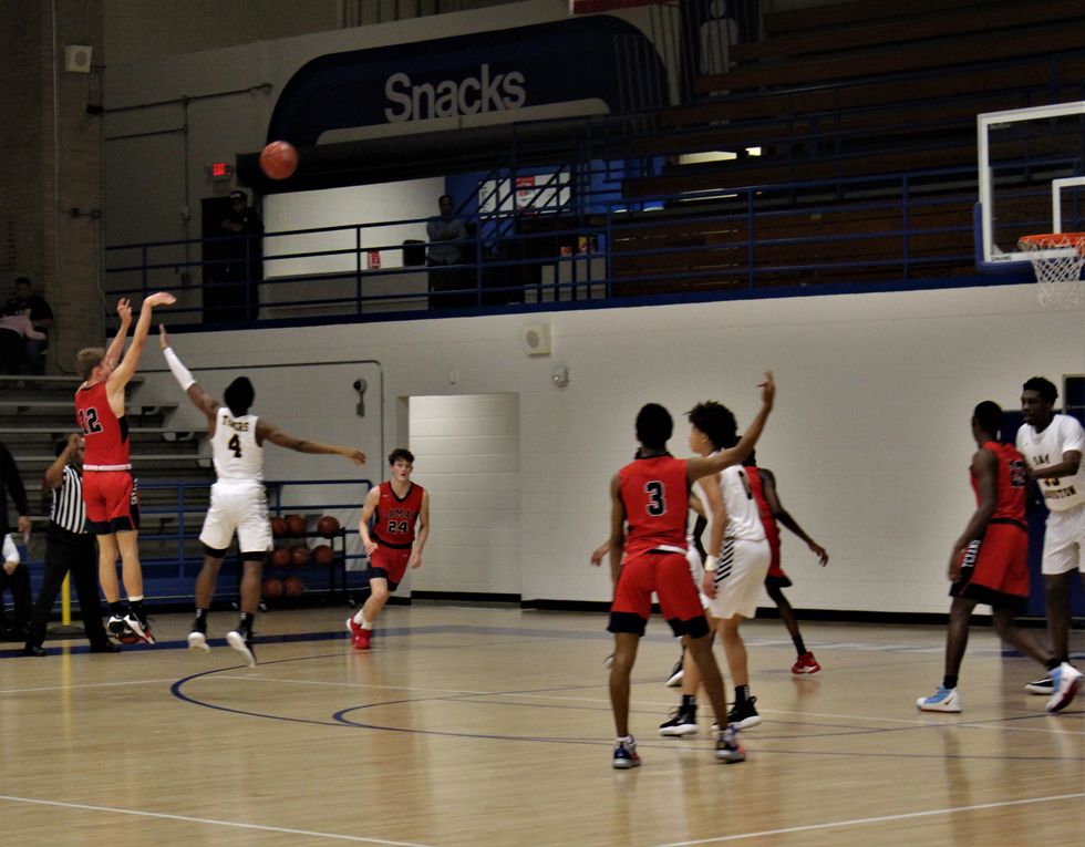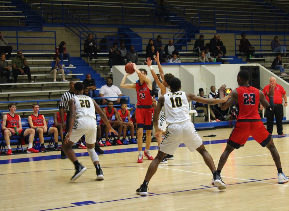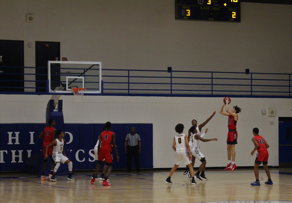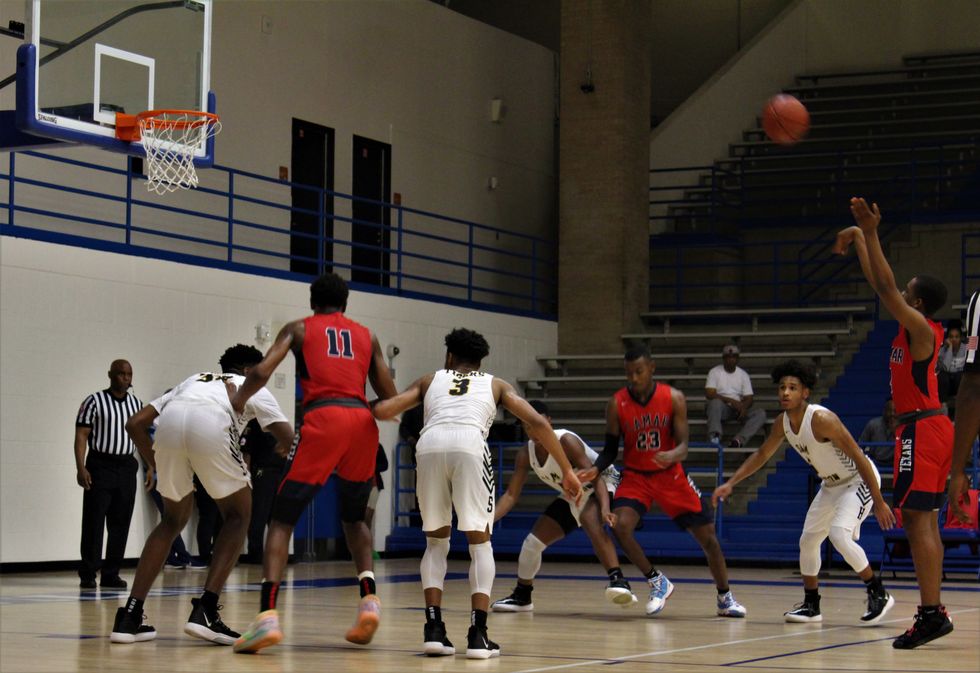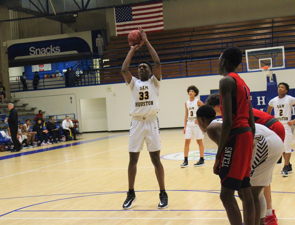 The Lamar Texans came together as a team to defeat the Sam Houston Tigers 59-55. At the end of the 1st quarter the score was 17-15 (Tigers). Throughout the 2nd (30-28), 3rd (45-44), and 4th (59-55) quarter the Texans stayed ahead of the Tigers to win a close and exciting game. Leading the way for the Texans was C. Smith (#3) w/ 12 points, Sir Issac (#11) w/ 10 points, and M. Brown (#23) w/ 10 points.