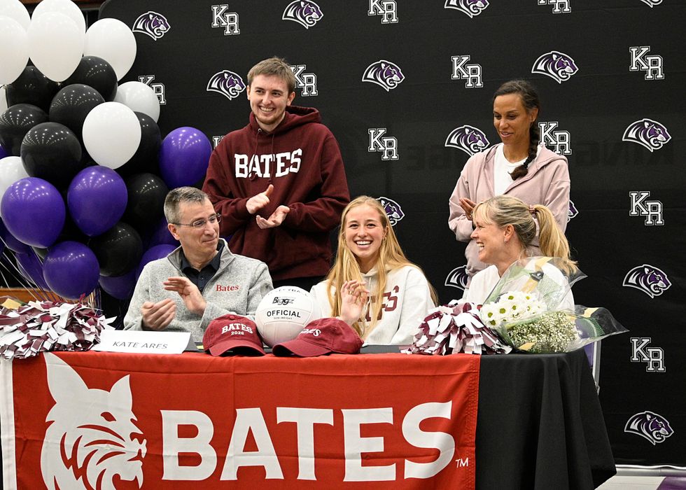 Kate Ares, who played volleyball and soccer, was the seventh athlete to sign and she is headed to play volleyball at Bates.
