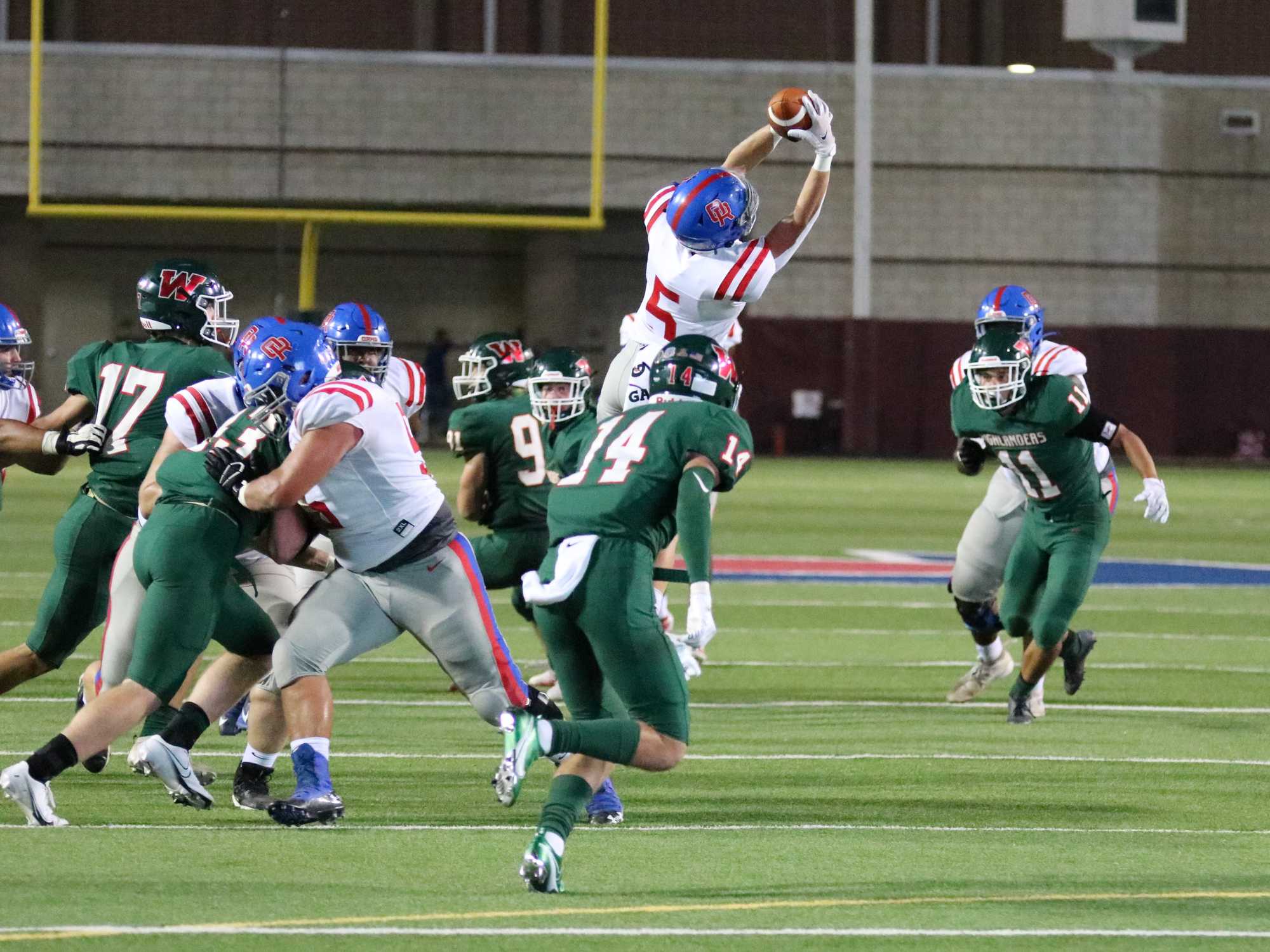The Woodland's Teddy Knox scored the first touchdown with a 34 yard pass from QB Conner Dechiro in the first quarter. In the second quarter, Senior running back Lane Obrien scored the second touchdown with an eight yard run, followed by Teddy Knox's 73 yard punt return for another Highlander touchdown, as well as a field goal by Senior kicker Trey Harrison. In the third quarter, Senior Jack Calhoun scored a 15 yard touchdown pass from Conner Dechiro. The Woodlands are now 2-0 in their district while Oak Ridge falls to 1-1.