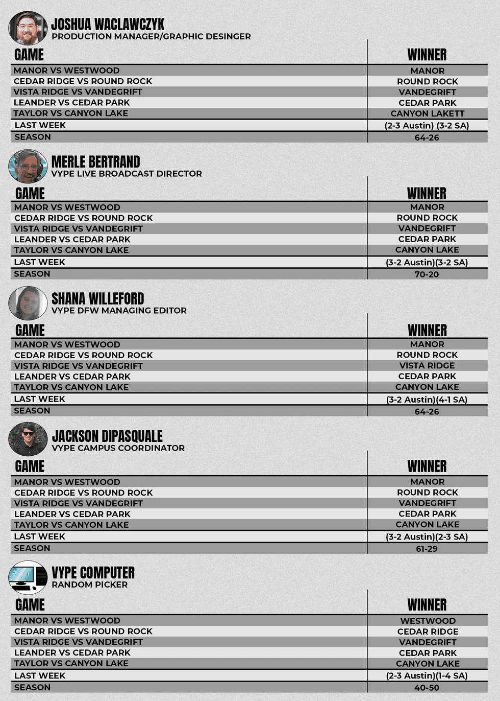 VYPE Austin Week 10 Pick 'em