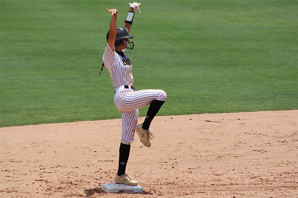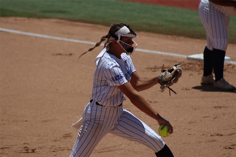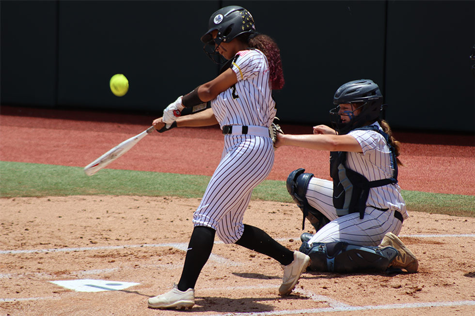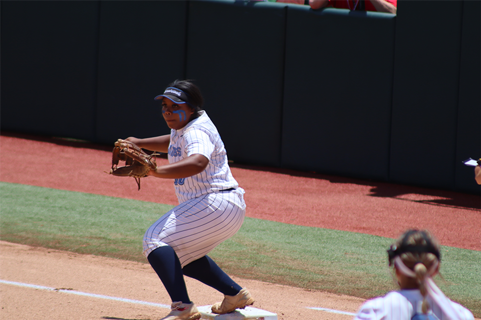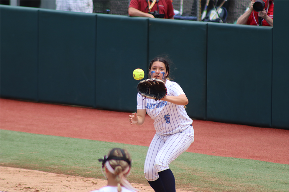 As Hollie Thomas looked up into the sky, battling the bright Texas sun, she reached up and caught a foul ball just behind home plate to secure a 5-0 victory over Sweeny on Saturday afternoon at Red & Charlene McCombs Field, Liberty clinched the program's third Class 4A State Championship in four seasons and back-to-back crowns.