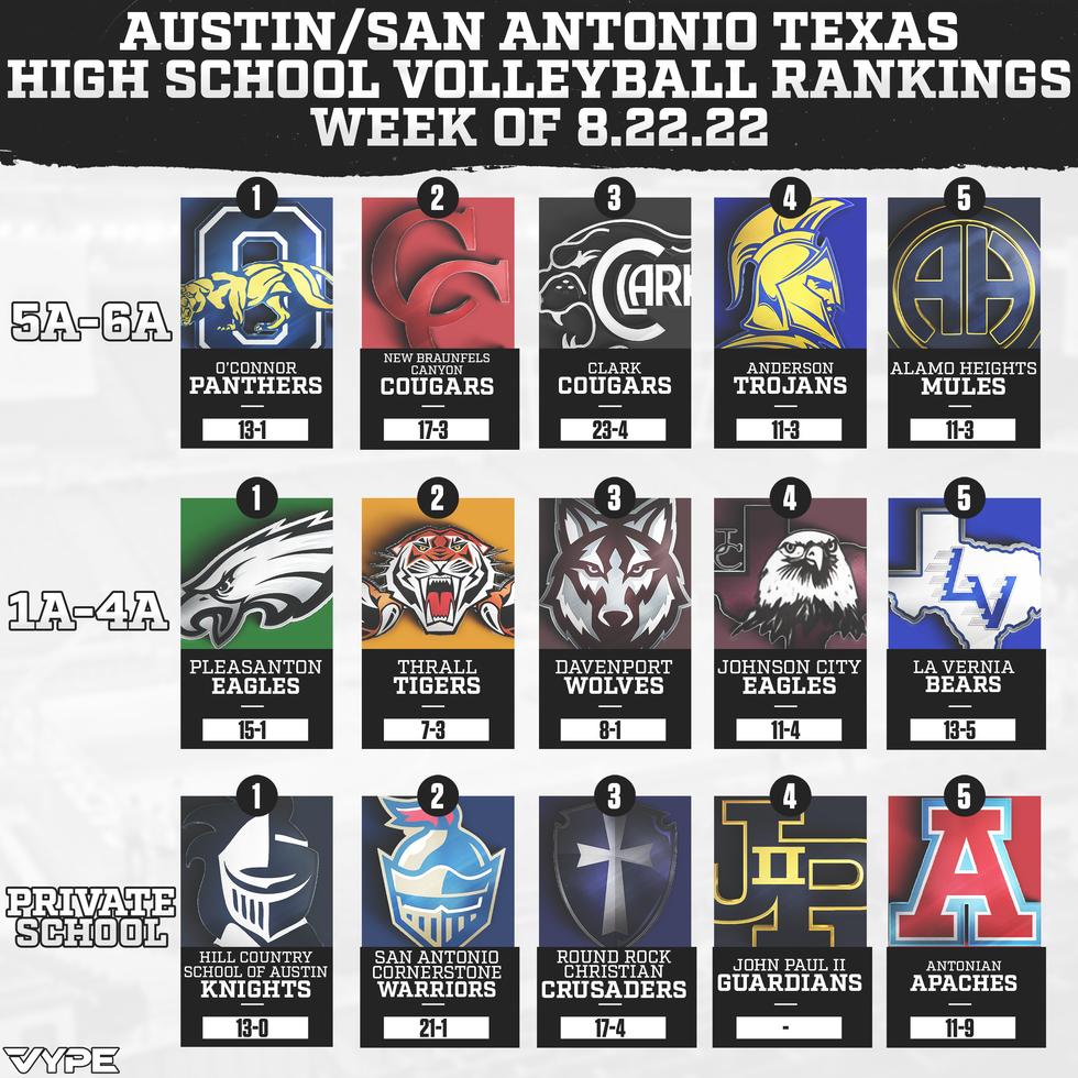 VYPE ATX/SATX Preseason Volleyball Rankings