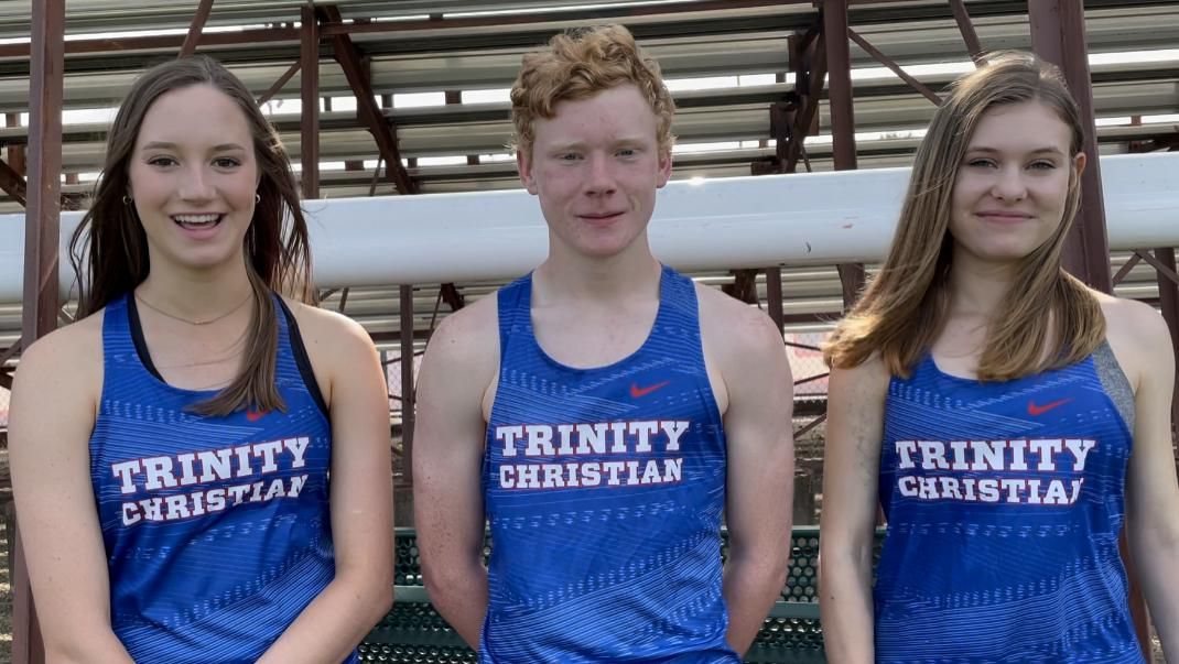 Emily Jones, Luke Townley, and Rachel Mills during an interview with VYPE DFW. Three seniors for Trinity Christian - Addison's cross country teams (8/9/2021).