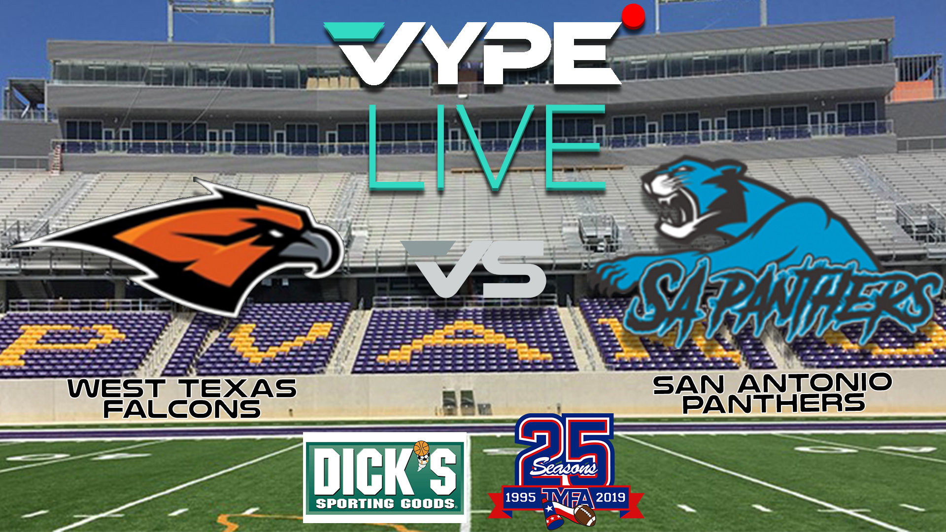 Join our talented VYPE Live crew for LIVE video coverage from the Texas Youth Football Association: 2019 State Championships on Saturday, December 14.
