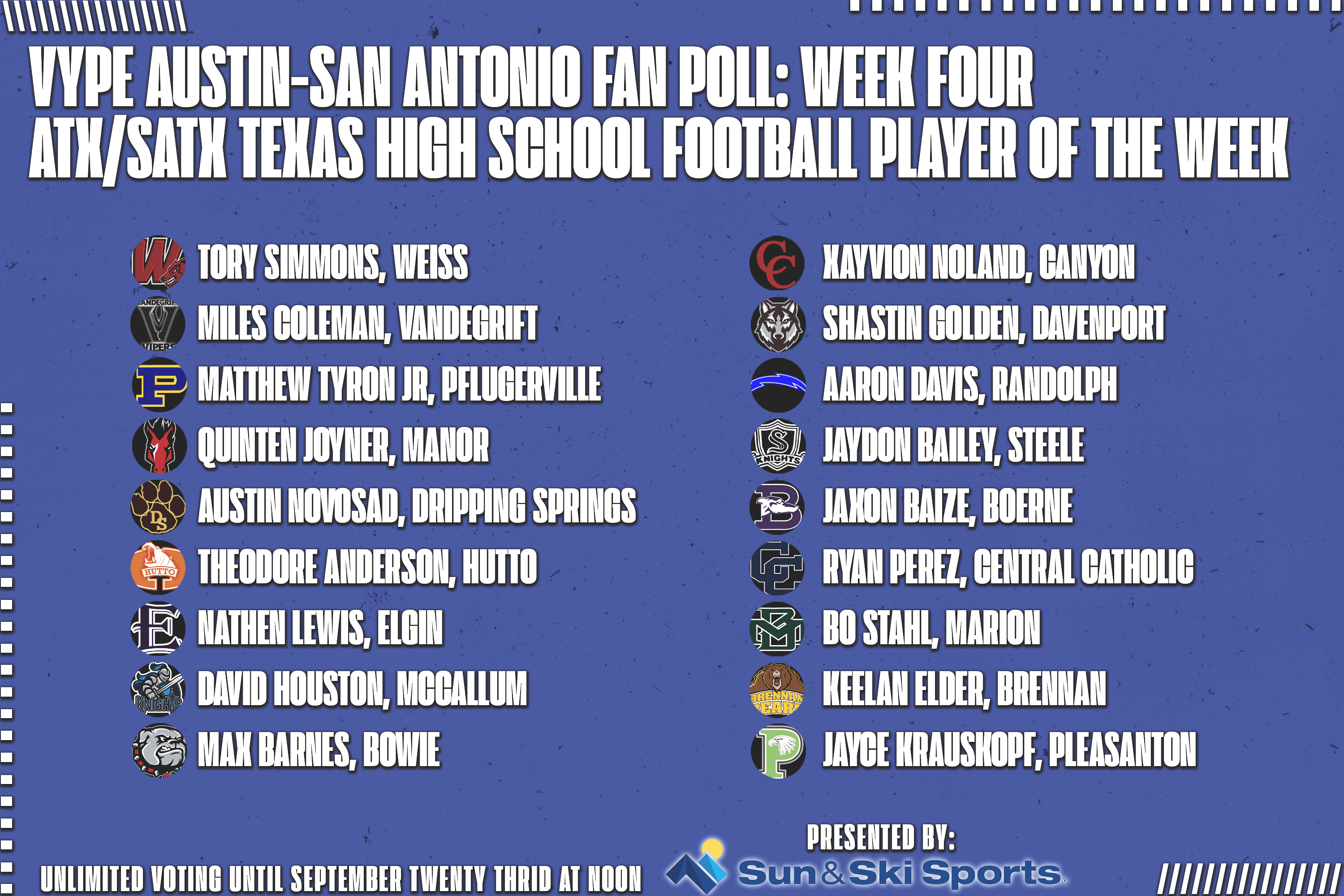 VYPE Austin-San Antonio Football Player of the Week Fan Poll - Week 4 (9.20.22)