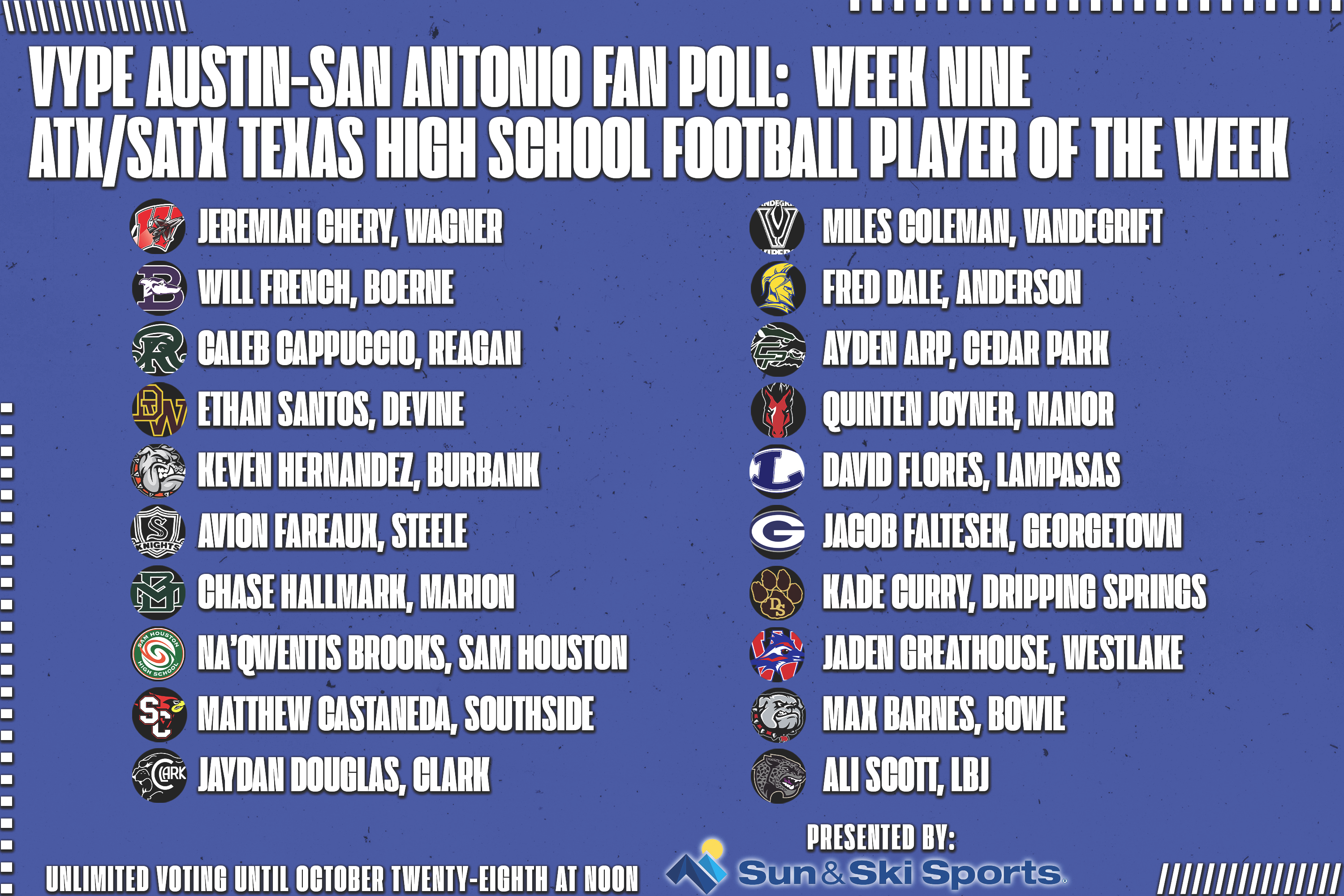 VYPE Austin-San Antonio Football Player of the Week Fan Poll - Week 9 (10.25.22)