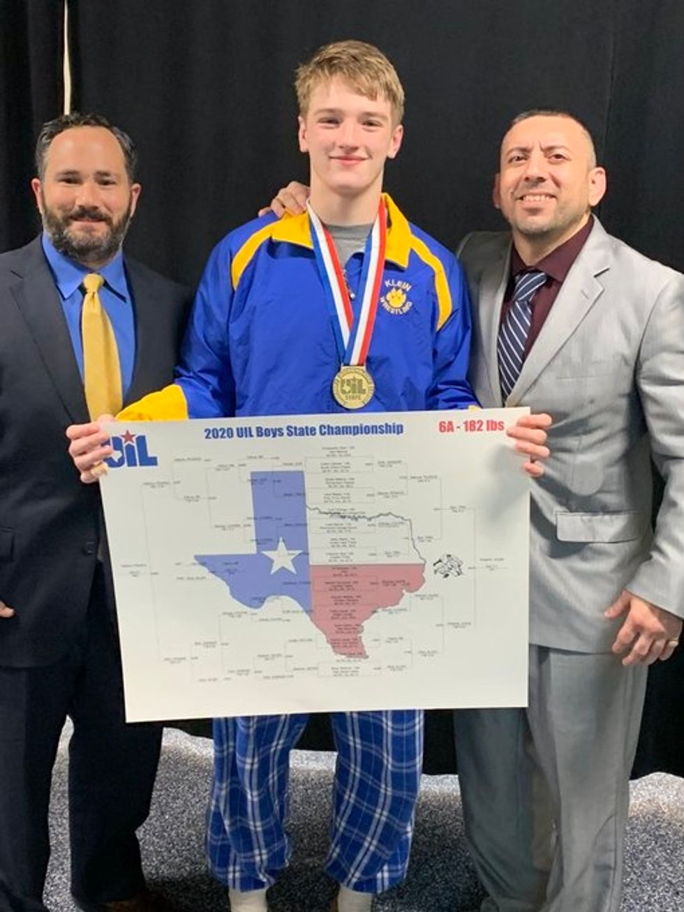Higgins led the Katy Tigers to a third place finish at UIL state. He won the 170-pound class in a classic performance. He's a two-time state winner.