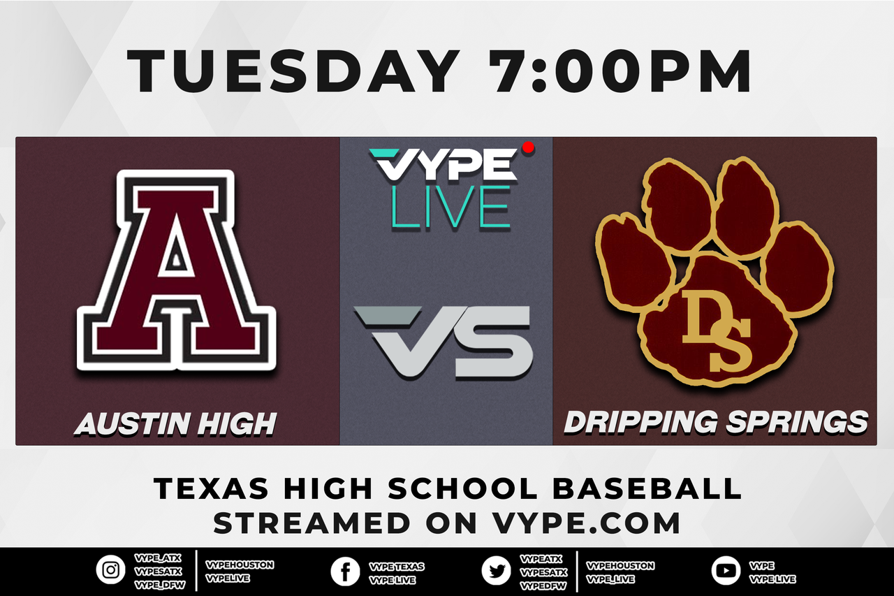 VYPE Live - Baseball: Austin High vs. Dripping Springs VYPE LiveFeb 28, 2023LOOK BELOW THE AD TO FIND THE BROADCAST FOR EACH TEAM - AUSTIN HIGH BROADCAST DRIPPING SPRINGS BROADCAST Keep reading...Show lessaustin highdripping springsbaseballtexas high school baseball