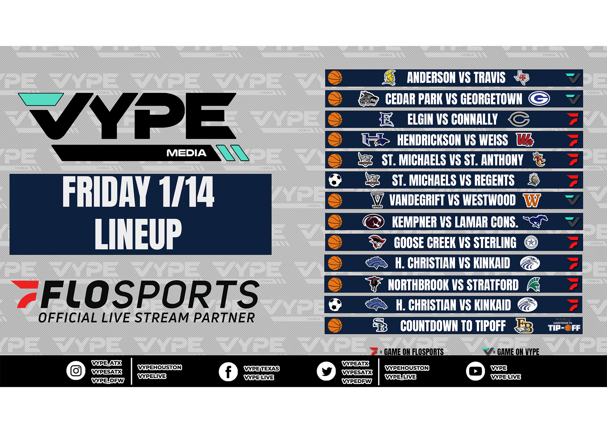 Click the link below or "keep reading" to watch these matchups on Friday, January 14: