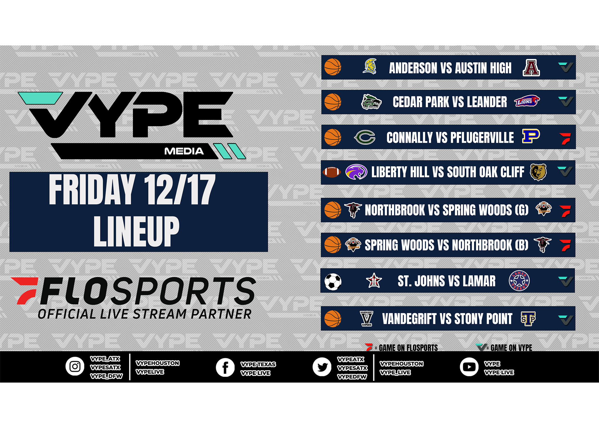 Click the links below or "keep reading" to watch these Texas High School Basketball matchups on Friday, December 17: