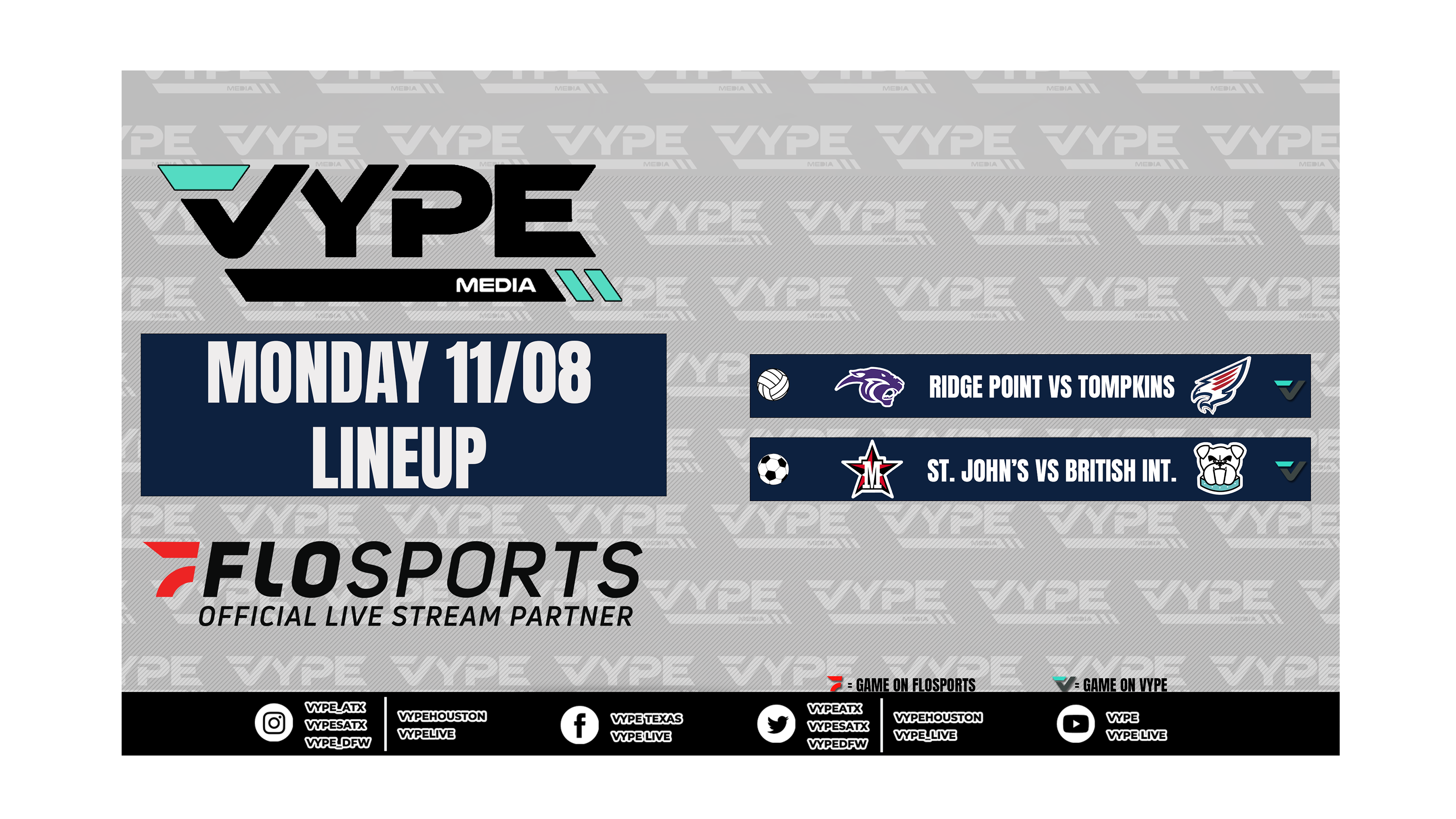Join our VYPE Live crews for these Texas High School match-ups on Monday, November 8: