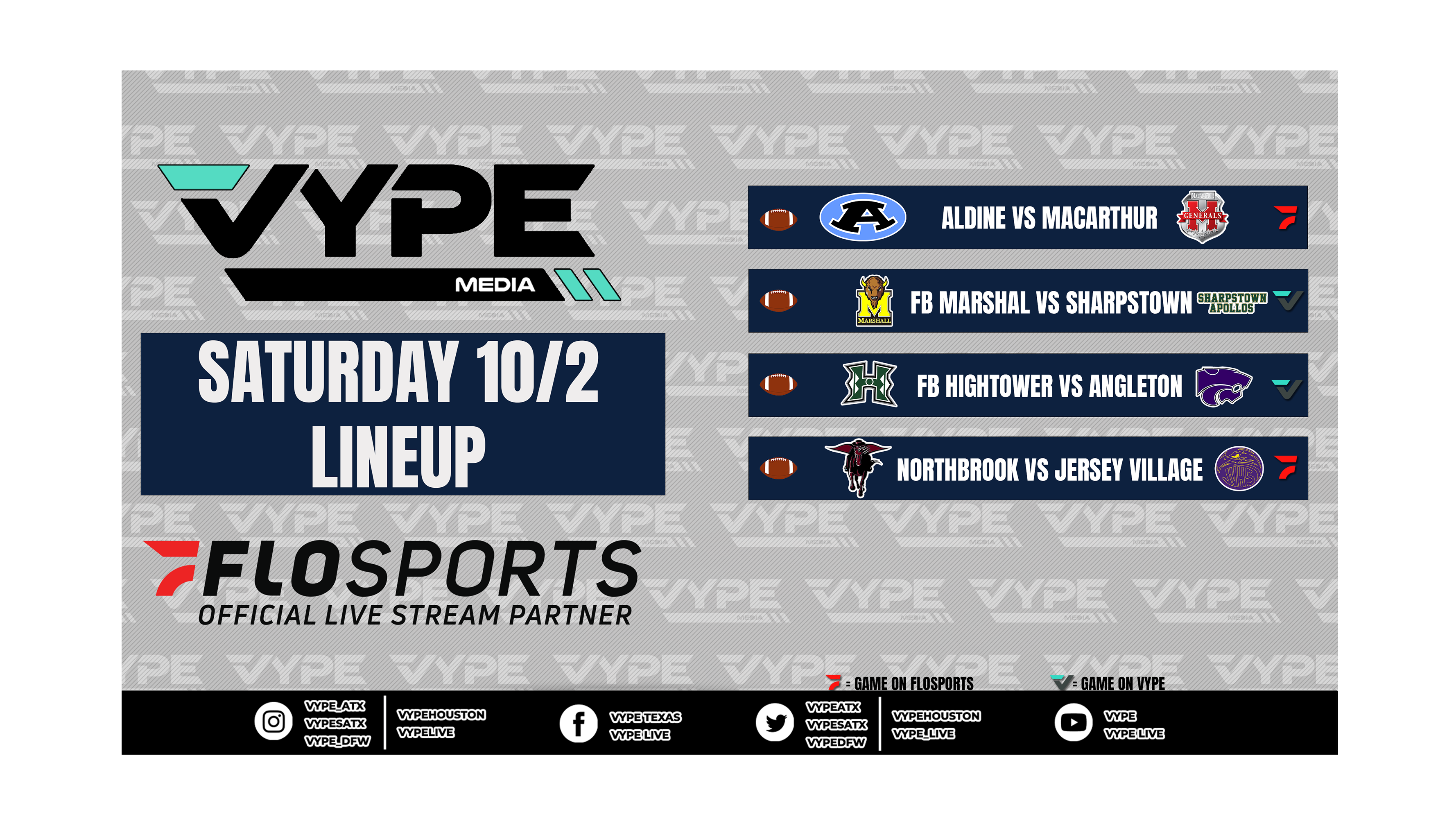 Join our VYPE Live crew for these Texas High School Football match-ups on Saturday, October 2: