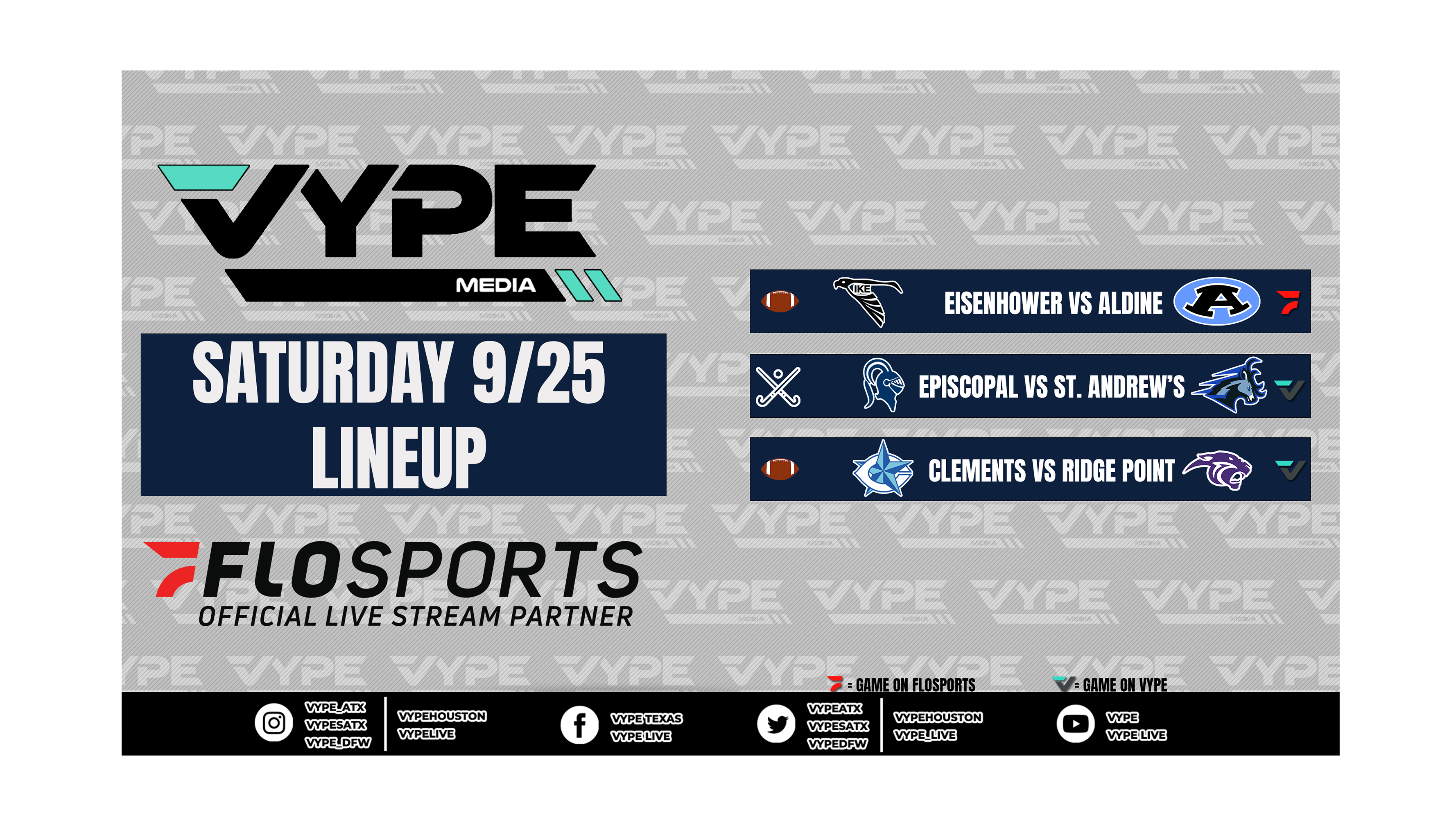 Join our VYPE Live crews for these Texas High School match-ups on Saturday, September 25: