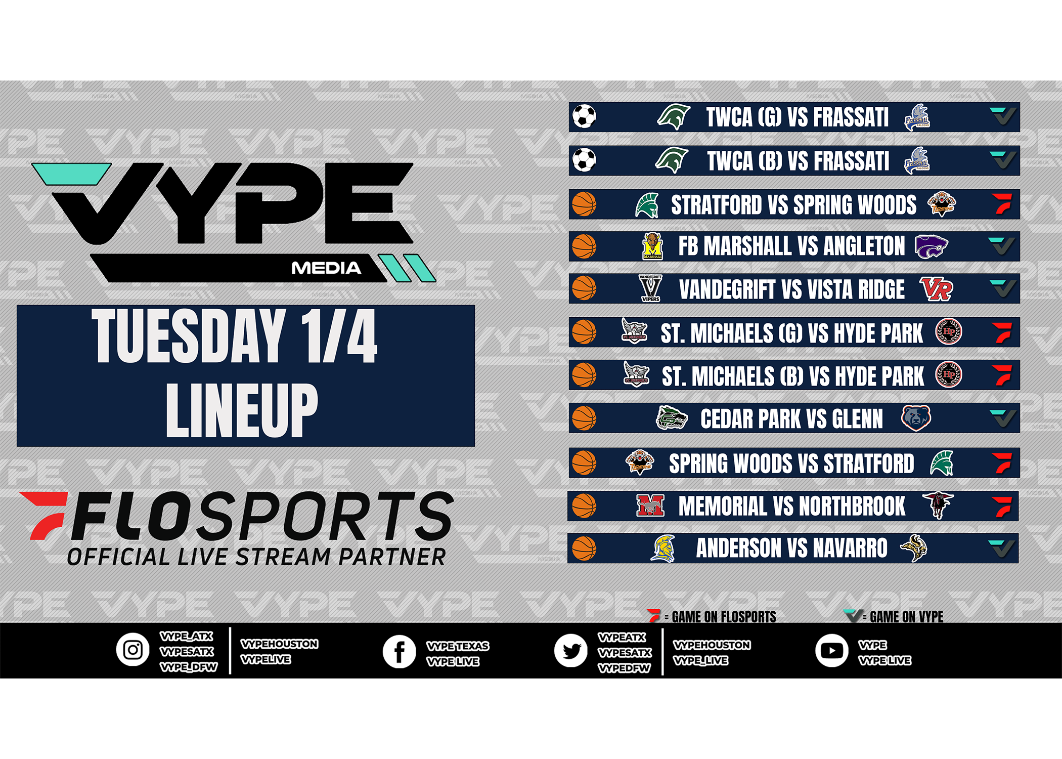 Click the link below or "keep reading" to watch these Texas High School Basketball matchups on Tuesday, January 4: