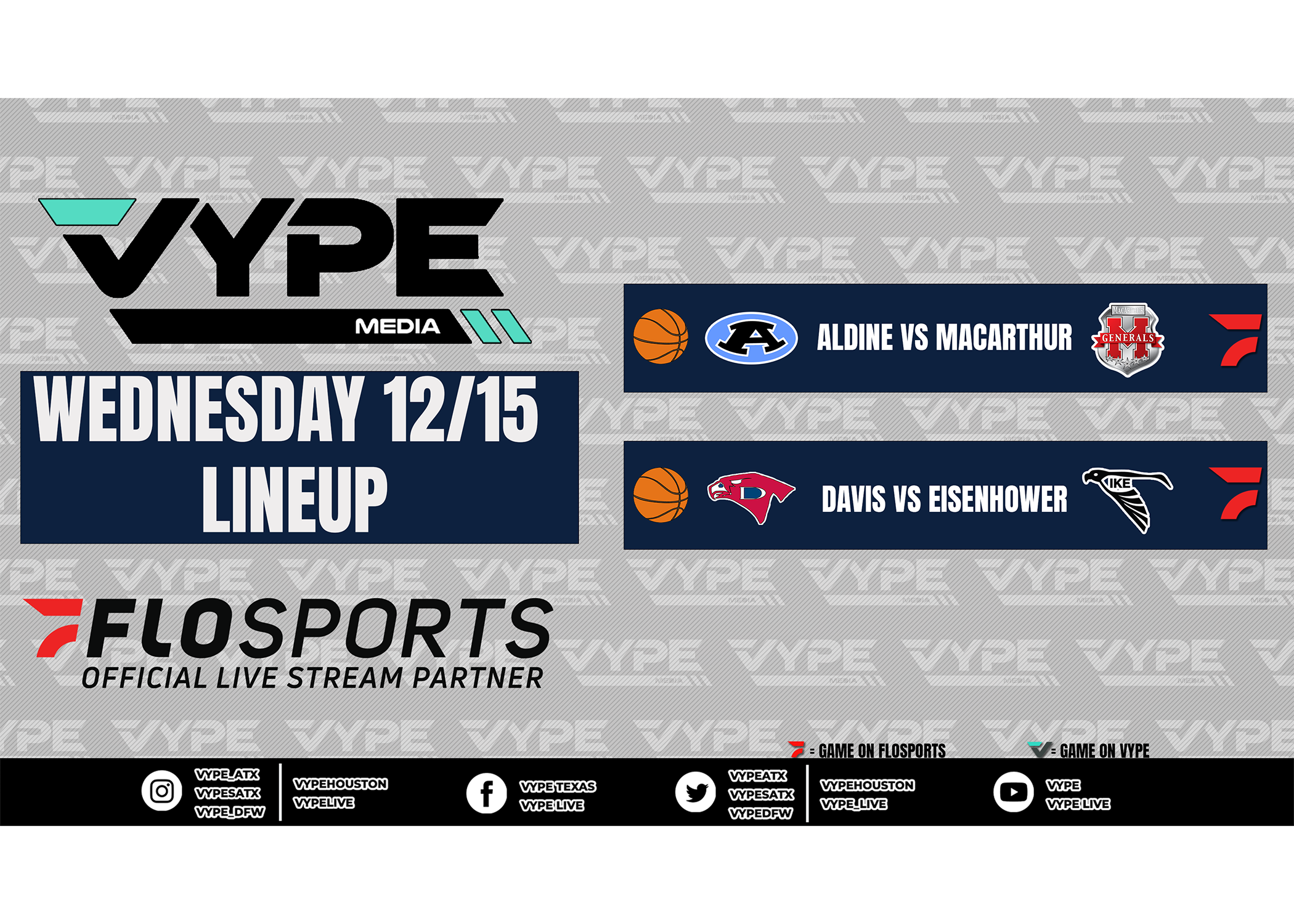 Click the links below or "keep reading" to watch these Texas High School Basketball lineups on Wednesday, December 15: