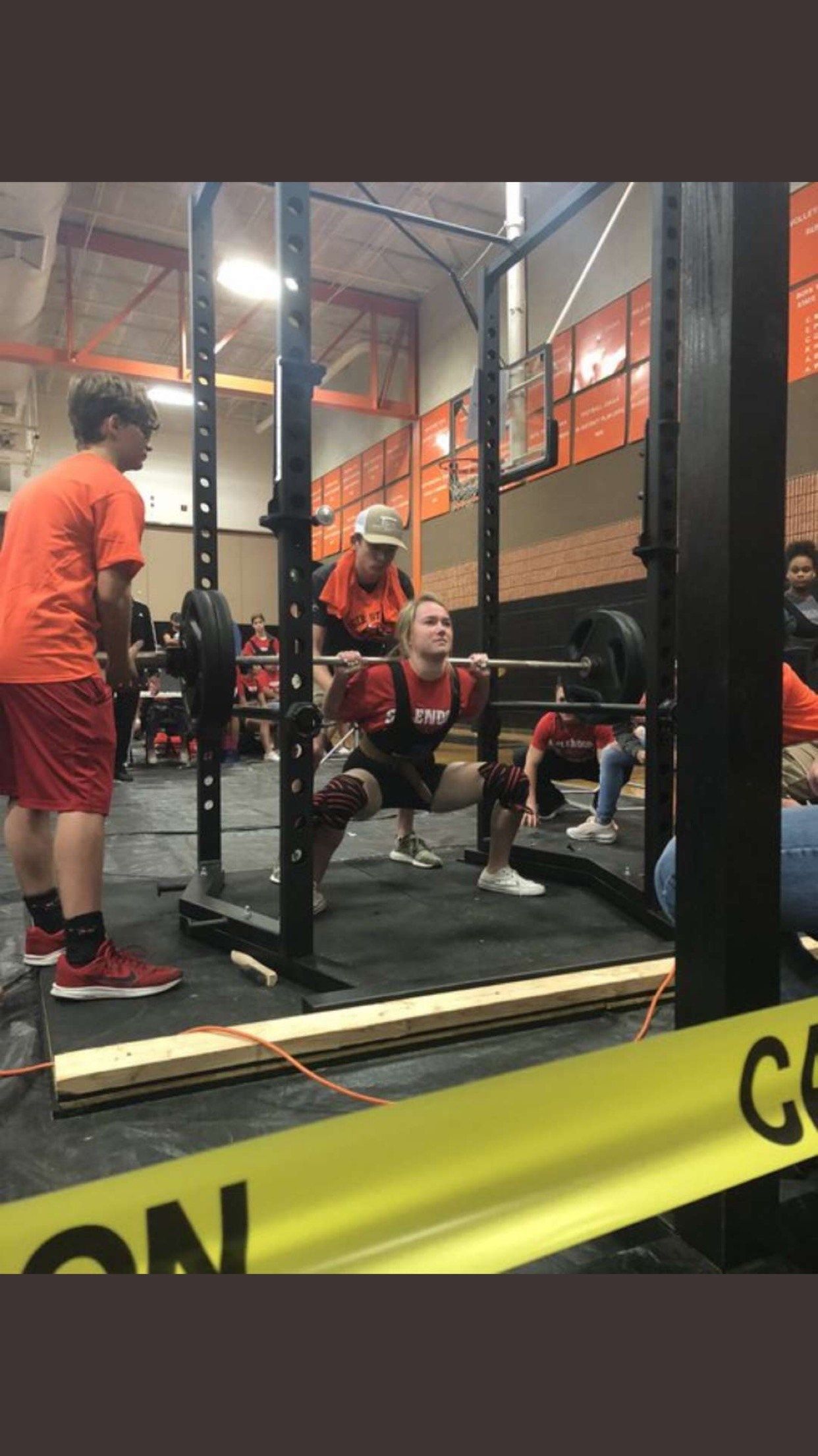 Junior Tori Moore squatting at her most recent Powerlifting meet.