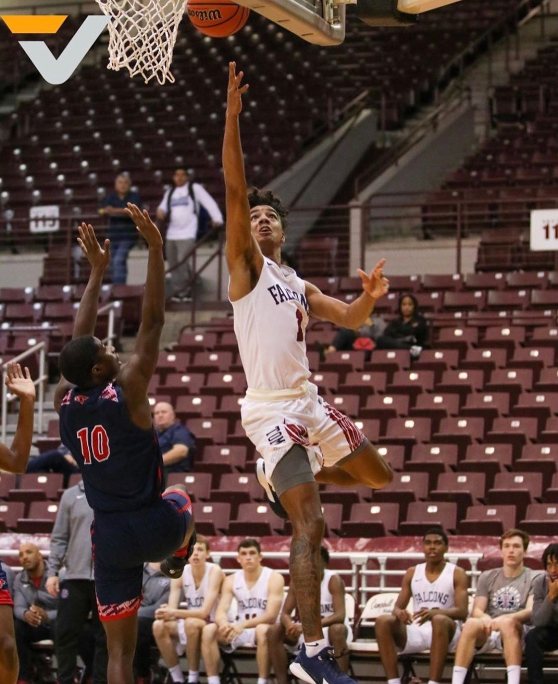 The Tompkins Falcons showed out Friday in their first game at the 2019 VYPE-Aldine ISD Tournament Presented by the United States Marine Corps in a late come from behind win over the Aldine Davis Falcons. Davis stayed ahead for most of the game until Tompkins was able to find the spark they needed to capitalize on a comeback. Sophomore guard BB Knight led Tompkins to victory, scoring 26 points.